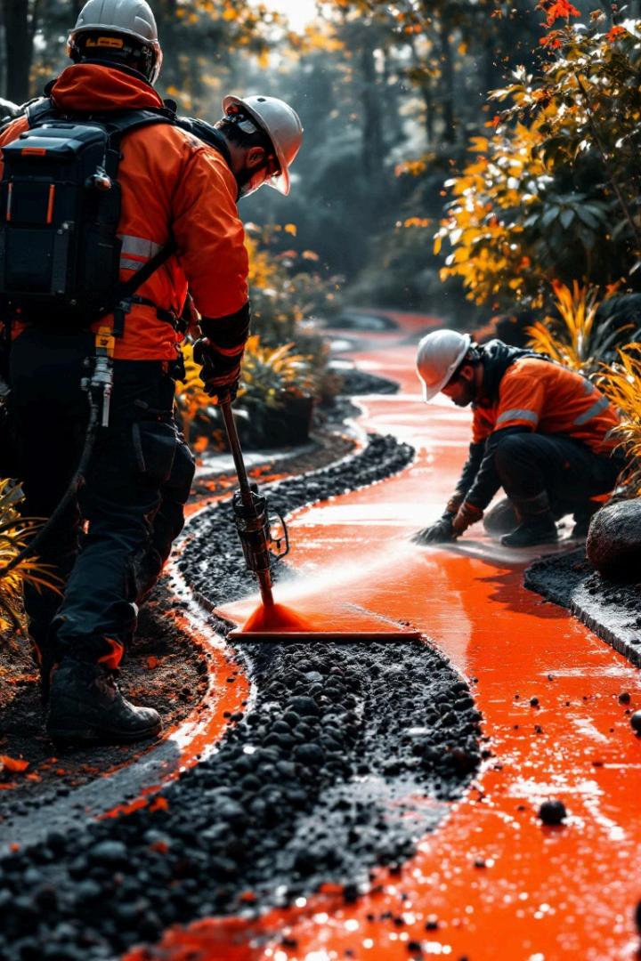 Premium UV-stable resin is mixed with aggregates. We apply the mixture with precision.