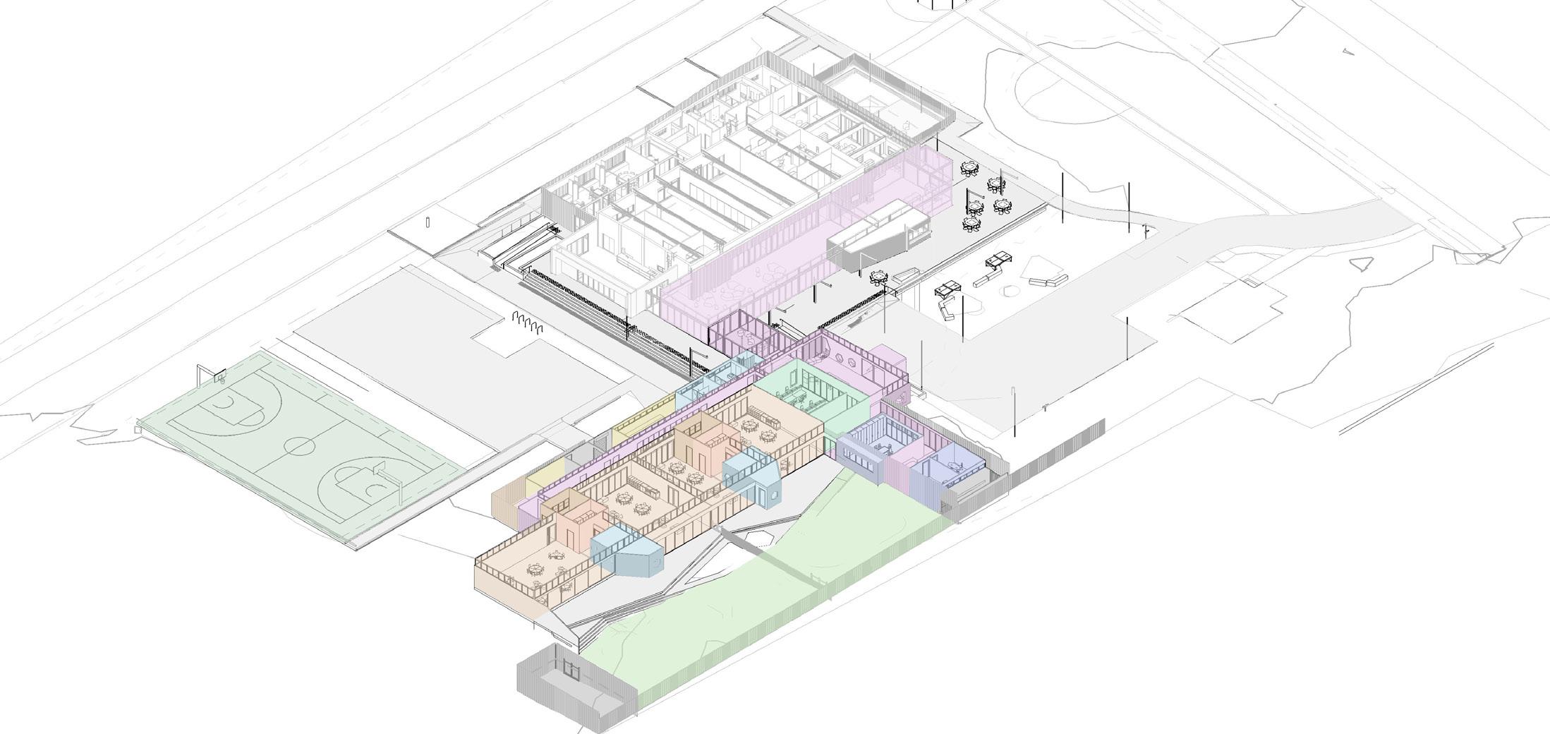 The design provides a flexible plan which responds to the changing needs of the community to create an epicentre with an integration of an early learning centre and library.