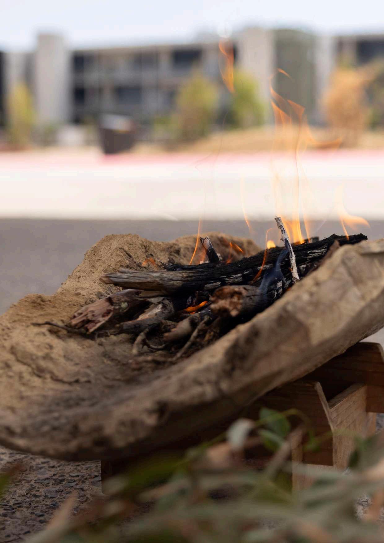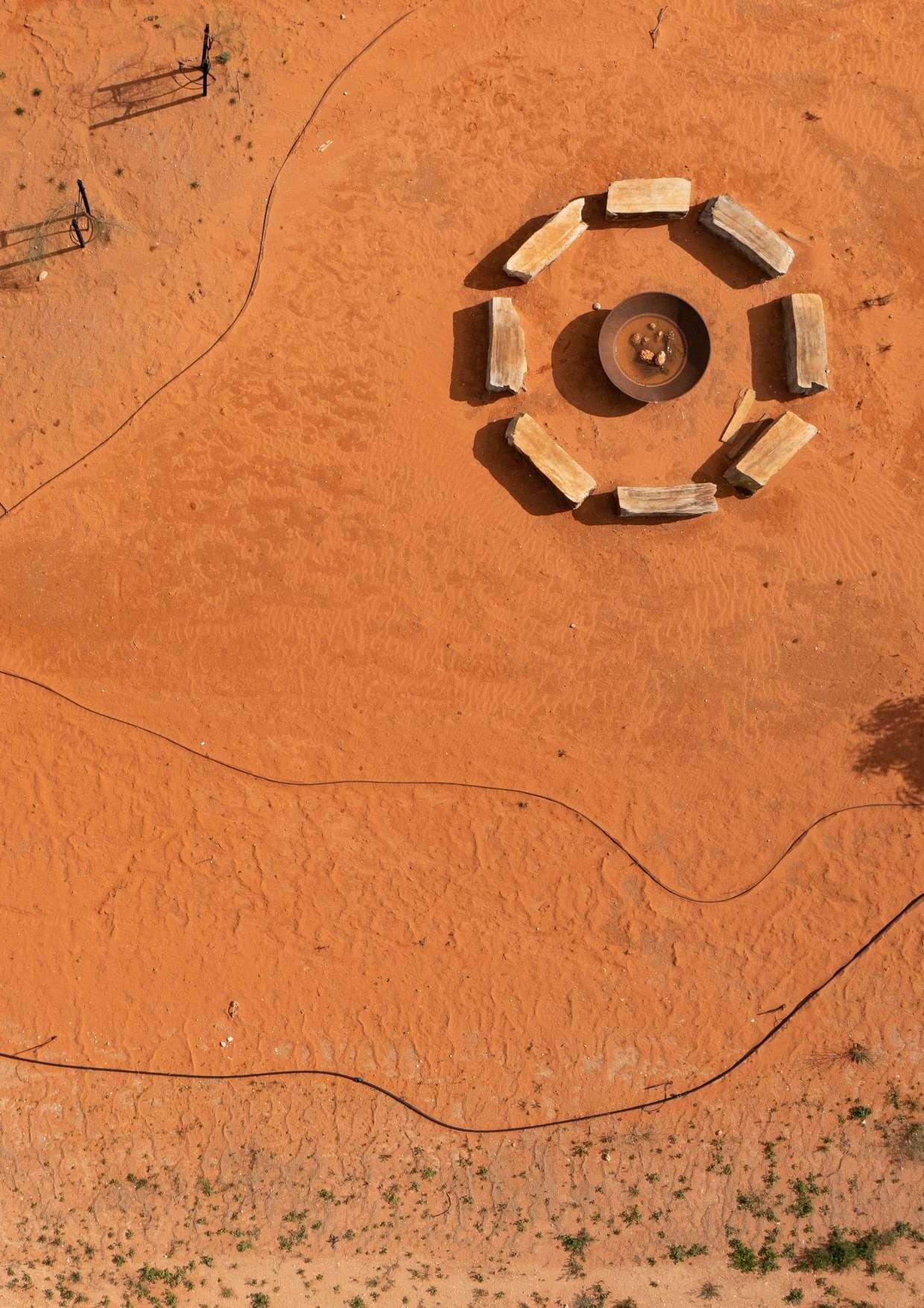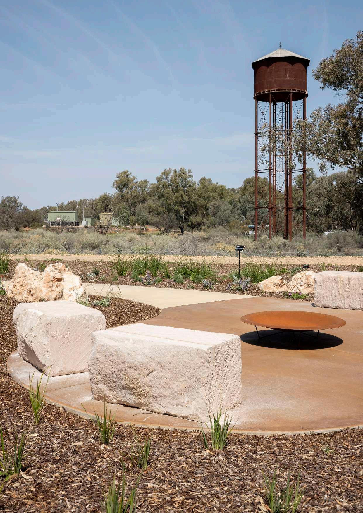 NBRS DESIGNED LANDSCAPE AFTER CONNECTING WITH COUNTRY (CWC) INPUT. YARNING CIRCLES AROUND THE FIRE PIT AFTER CONSULTATION WITH THE LOCAL COMMUNITY THROUGHOUT THE DESIGN PROCESS.
