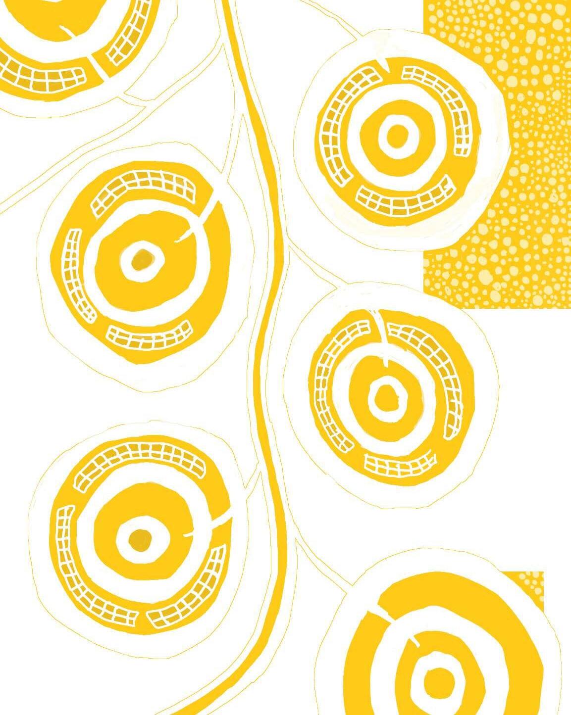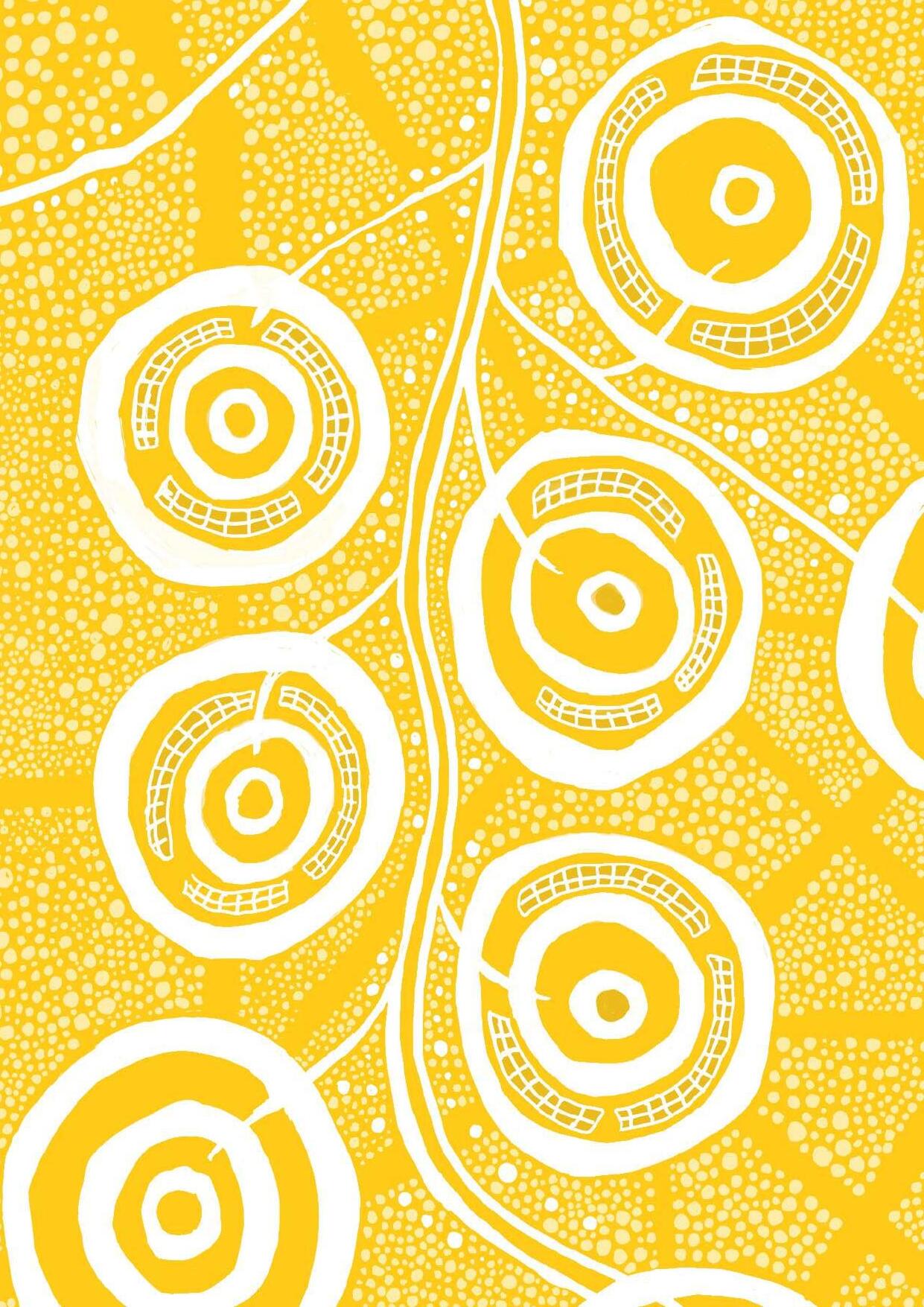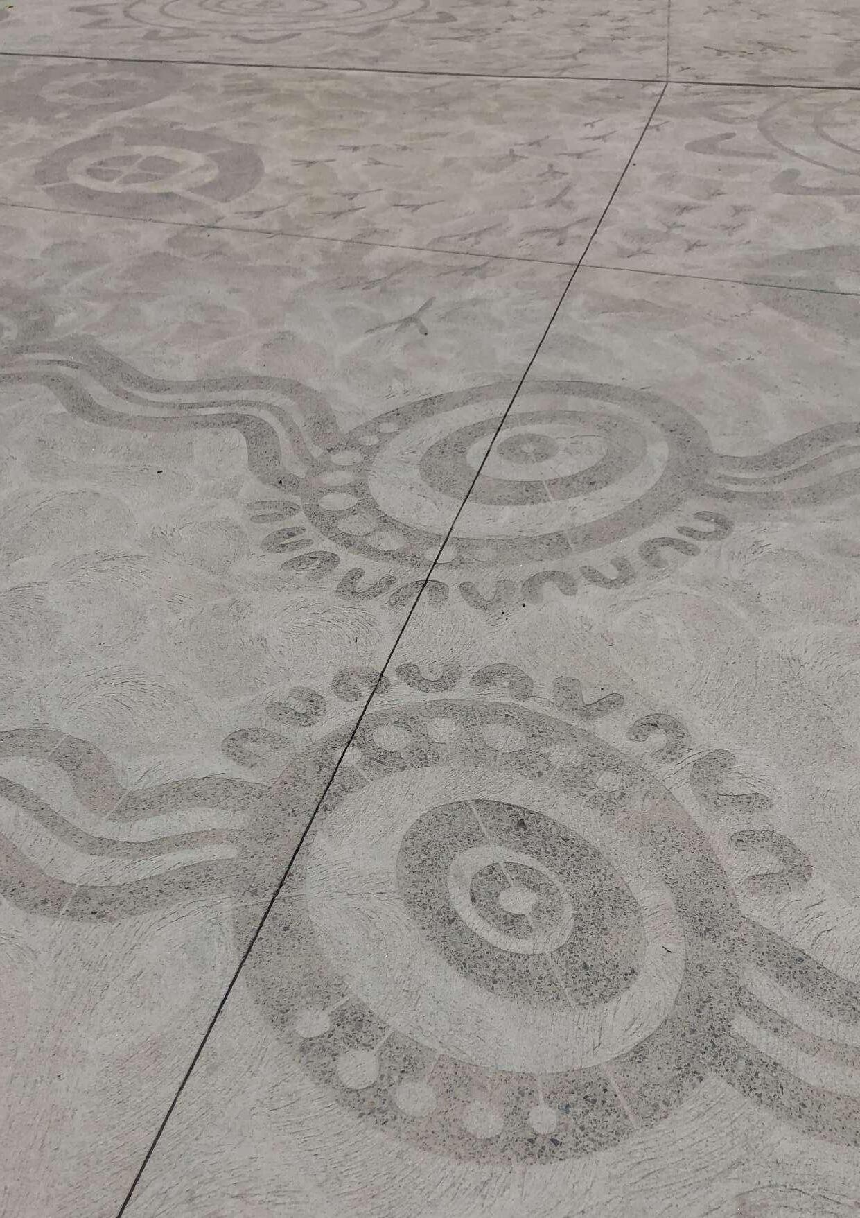 This artwork ‘Shared Waterways’ envisages modern practices of settlement formed around Aboriginal values and understandings of Country. The shared waterways acknowledging our connection and collective responsibilities. The artwork represents the aspirations of many Aboriginal and non-Aboriginal people who work for the health and wellbeing of Country (which includes us), for contemporary living and development to start to take their cue from Country and that future developments begin to listen to Country first and work around or within what she needs to keep healthy.