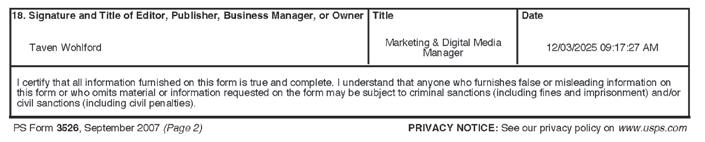 The Auctioneer (ISSN 1070-0137), Copyright © 2025 by the National Auction Association is published Bi-monthly Dec/Jan, Feb/Mar, Apr/May, Jun/Jul, Aug/Sep, Oct/Nov by the National Auction Association, 8880 Ballentine St., Overland Park, KS, 66214-1900. Periodicals postage paid at Kansas City, MO, and additional mailing offices. POSTMASTER: Send address changes to The Auctioneer Magazine (NAA), 8880 Ballentine St., Overland Park, KS 66214-1900. Materials may not be reproduced without permission.