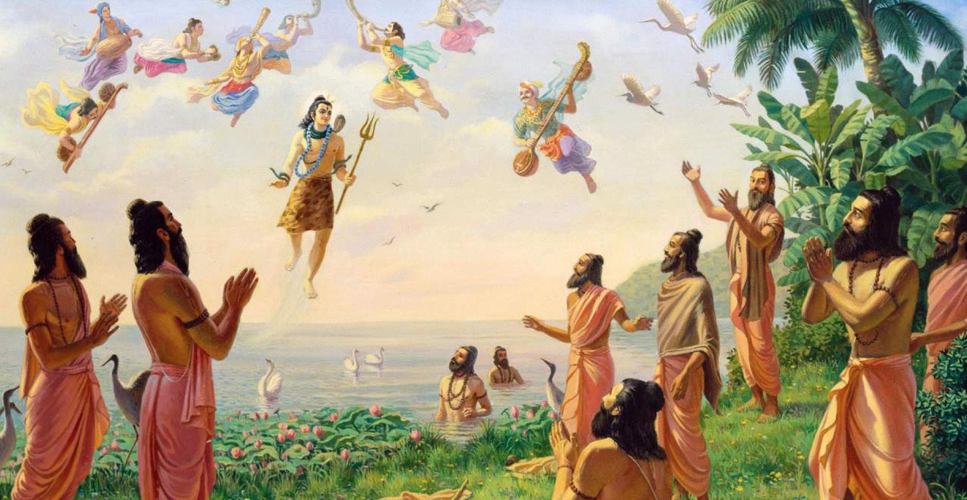 Hace mucho, mucho tiempo, muchos grandes sabios se reunieron en la orilla del río Sarasvati para realizar sacrificios y escuchar a los Purāṇas Esos sabios eran todos eruditos en las śāstra y estaban acostumbrados a realizar austeridades. En esta reunión en particular comenzaron a discutir sobre la Verdad Absoluta y se planteó la siguiente cuestión: Entre las tres deidades predominantes de este mundo material; a saber, el Señor Brahma, el Señor Vishnu y el Señor Shiva, ¿quién es el Supremo?