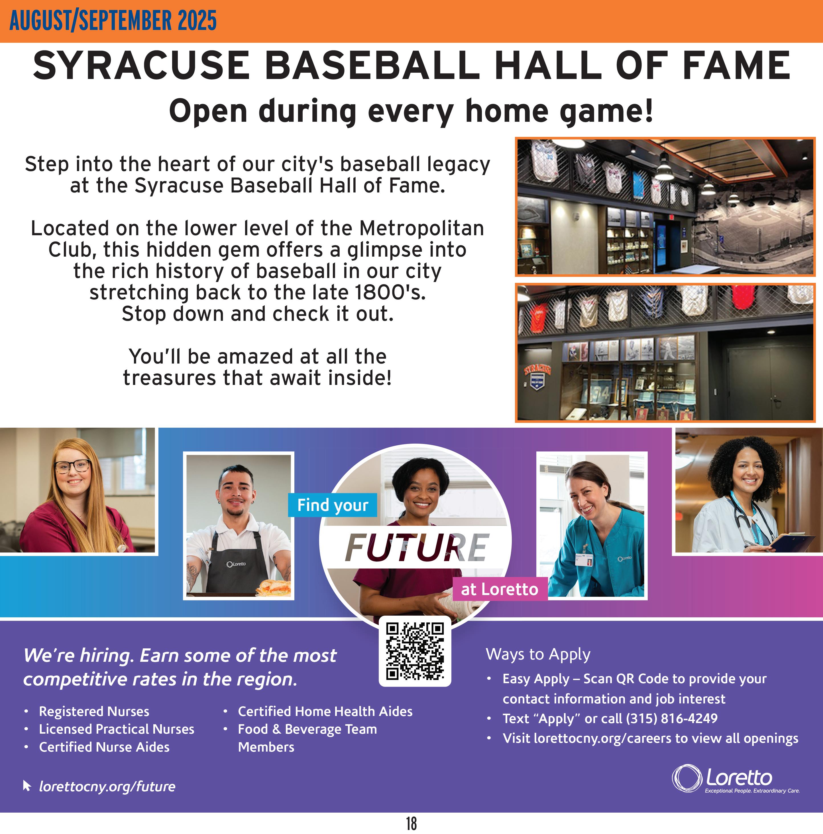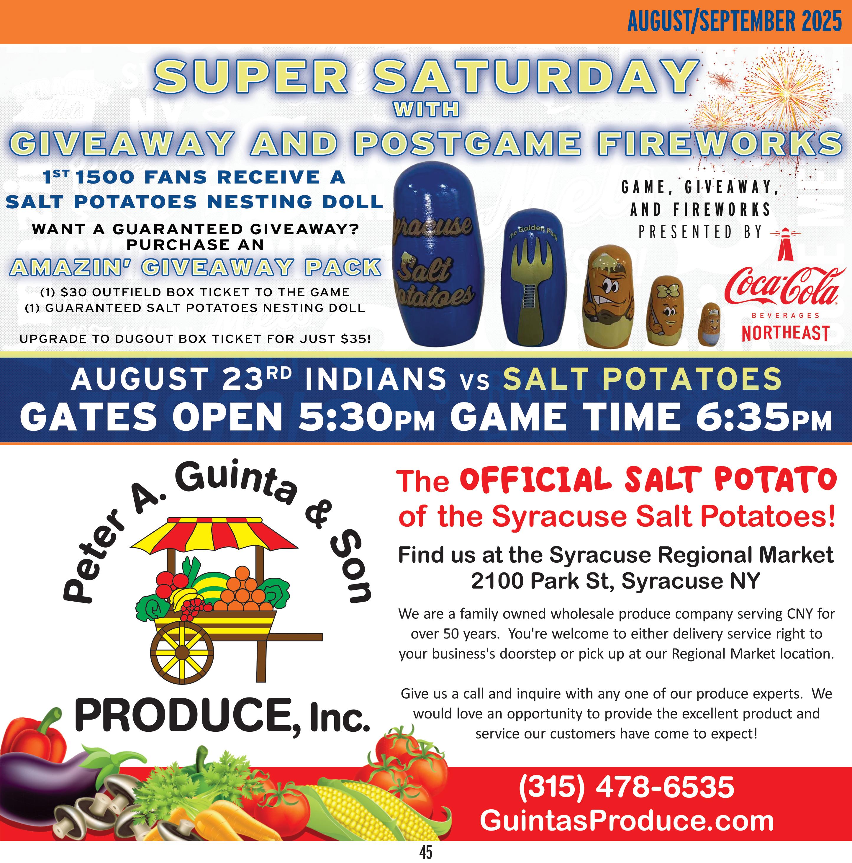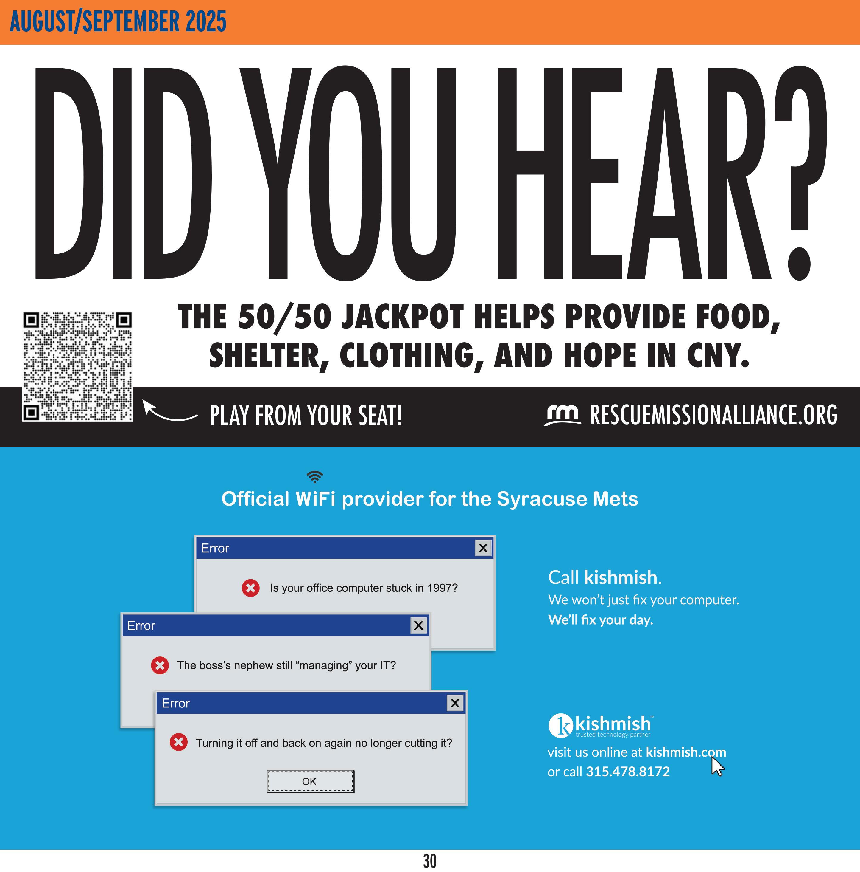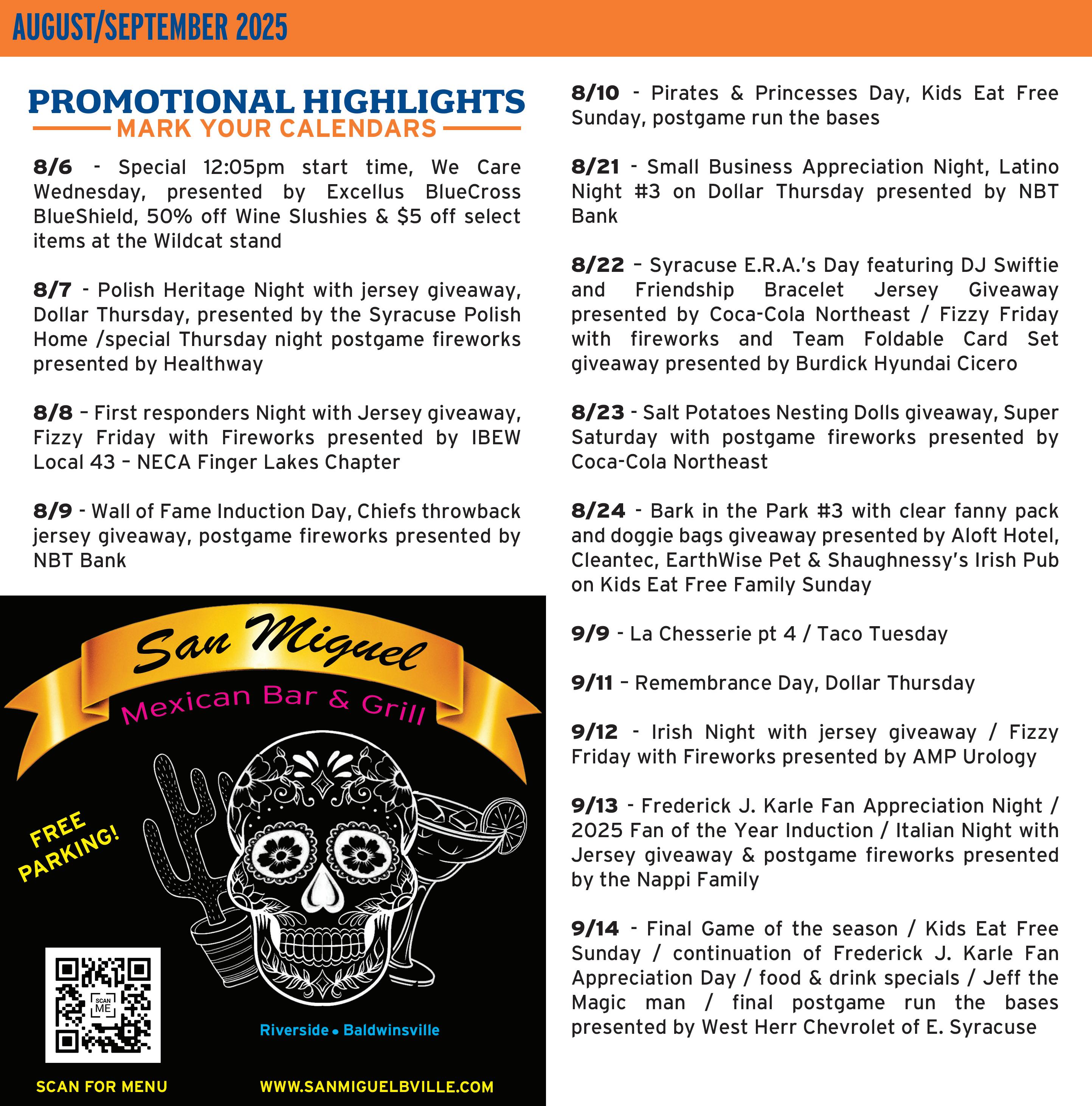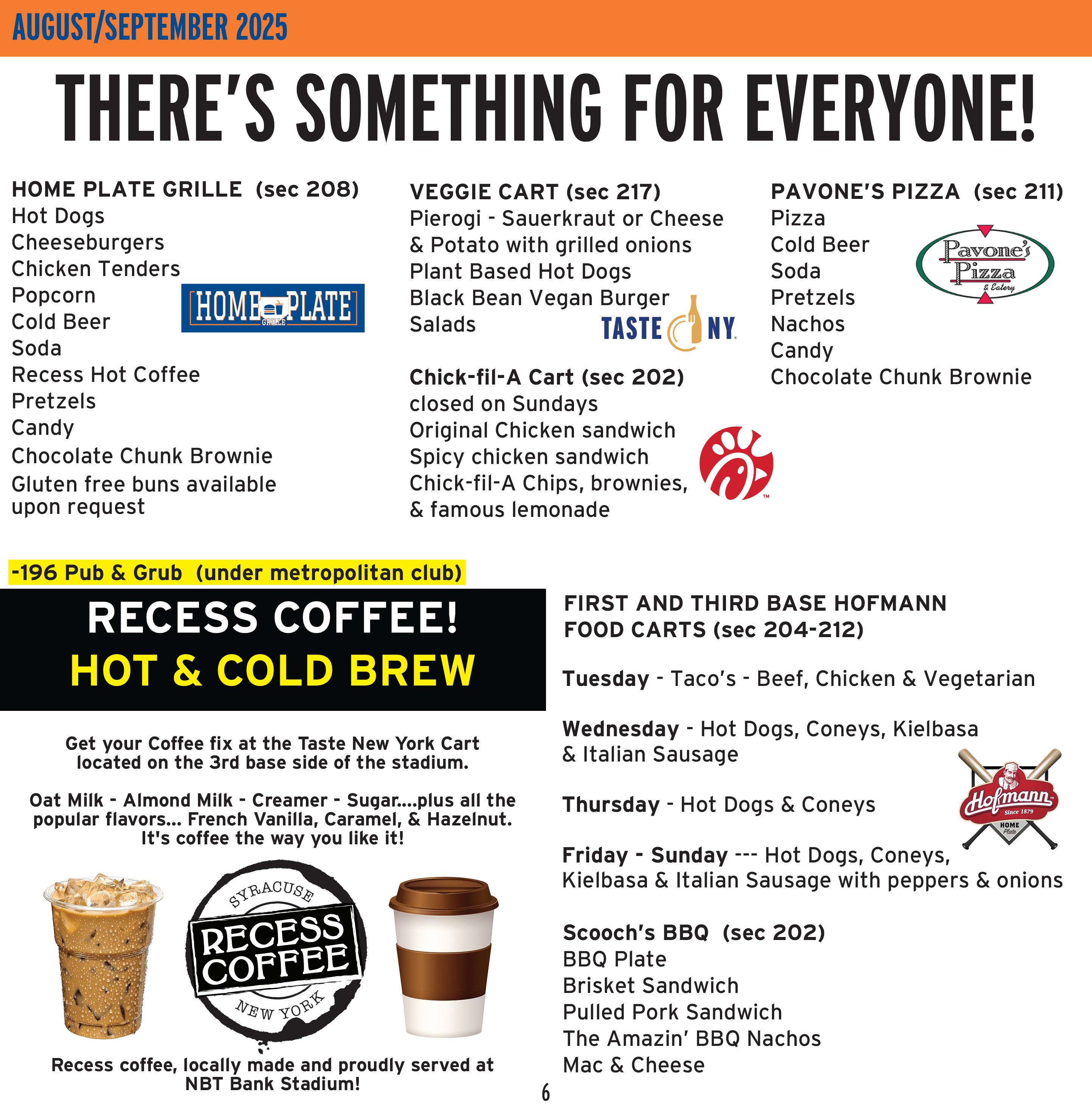 Welcome to the Syracuse Mets August/September 2025 Gameday Program! Dive into the ultimate fan experience with our comprehensive guide. Inside, you'll find player bios that highlight some of the stars of our team, exciting promotional information to keep you in the loop on all the fun events, and the 2025 schedule so you never miss a game. Our A-Z guide covers everything you need to know about the stadium and game day logistics. Plus, keep track of the action with our scorecard and much more.