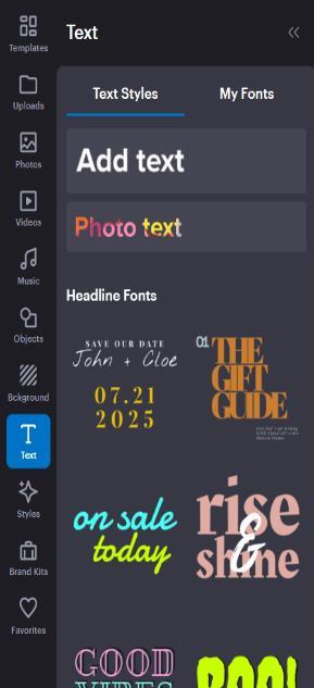 เป็นเมนูสำหรับเลือกข้อความต่างๆ ใส่ลงในงานออกแบบของเรา Graphic Design for Digital Business