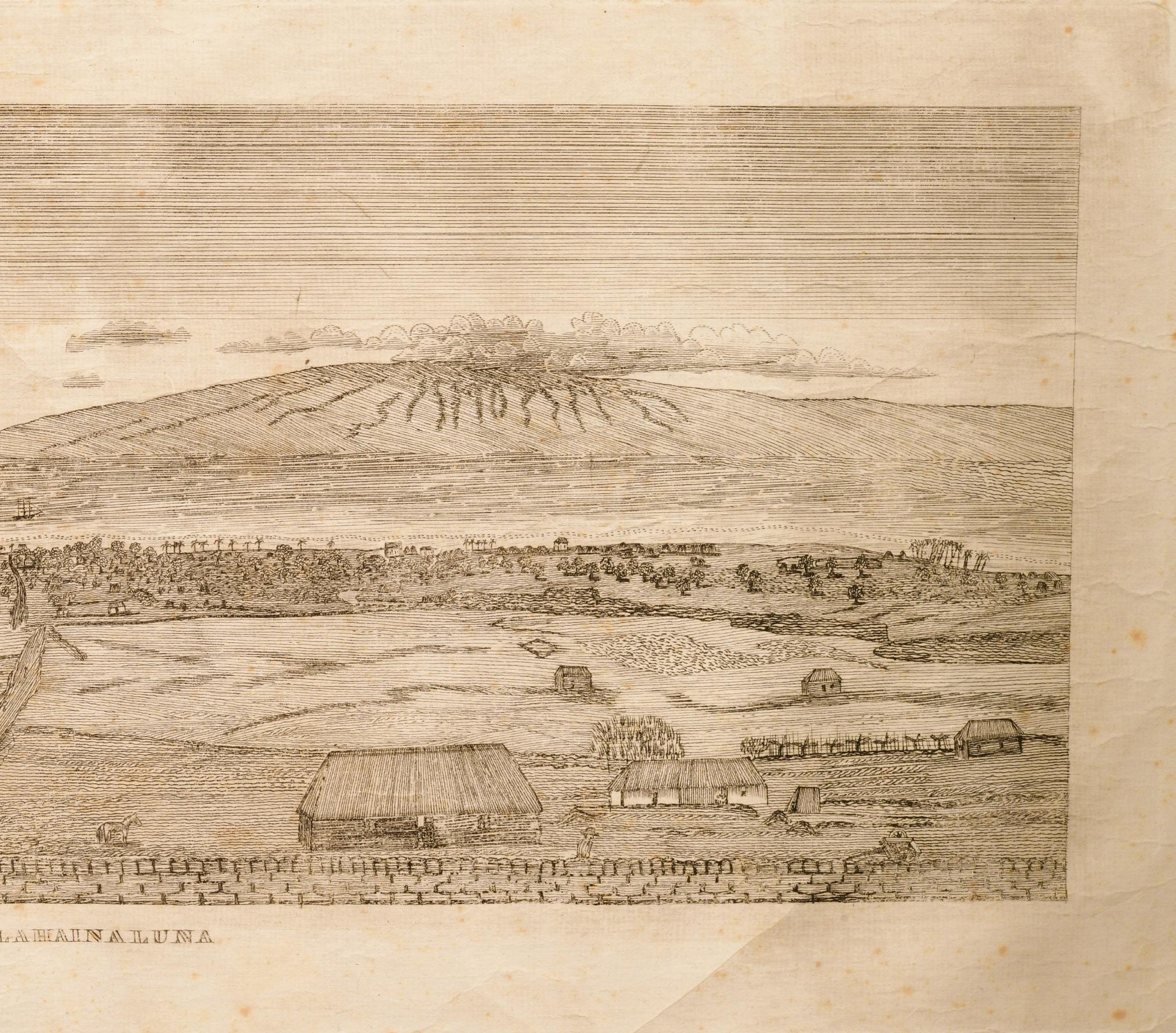 Sailing in the Indian Ocean as a surgeon on a large whaling ship, artist William Lewis Roderick crafted an image that pictured the exhilaration of global whaling expeditions. Roderick used the panbone of a sperm whale that was hunted on his voyage as a canvas for this scrimshaw image. This particular bone, a section of the back of a sperm whale’s jaw, provided a larger, flatter surface area for pictures than the smaller surface available on the whale’s teeth more commonly used for scrimshaw engraving. The panbone offered the opportunity for more expansive scenes to be displayed, reminiscent of paintings.