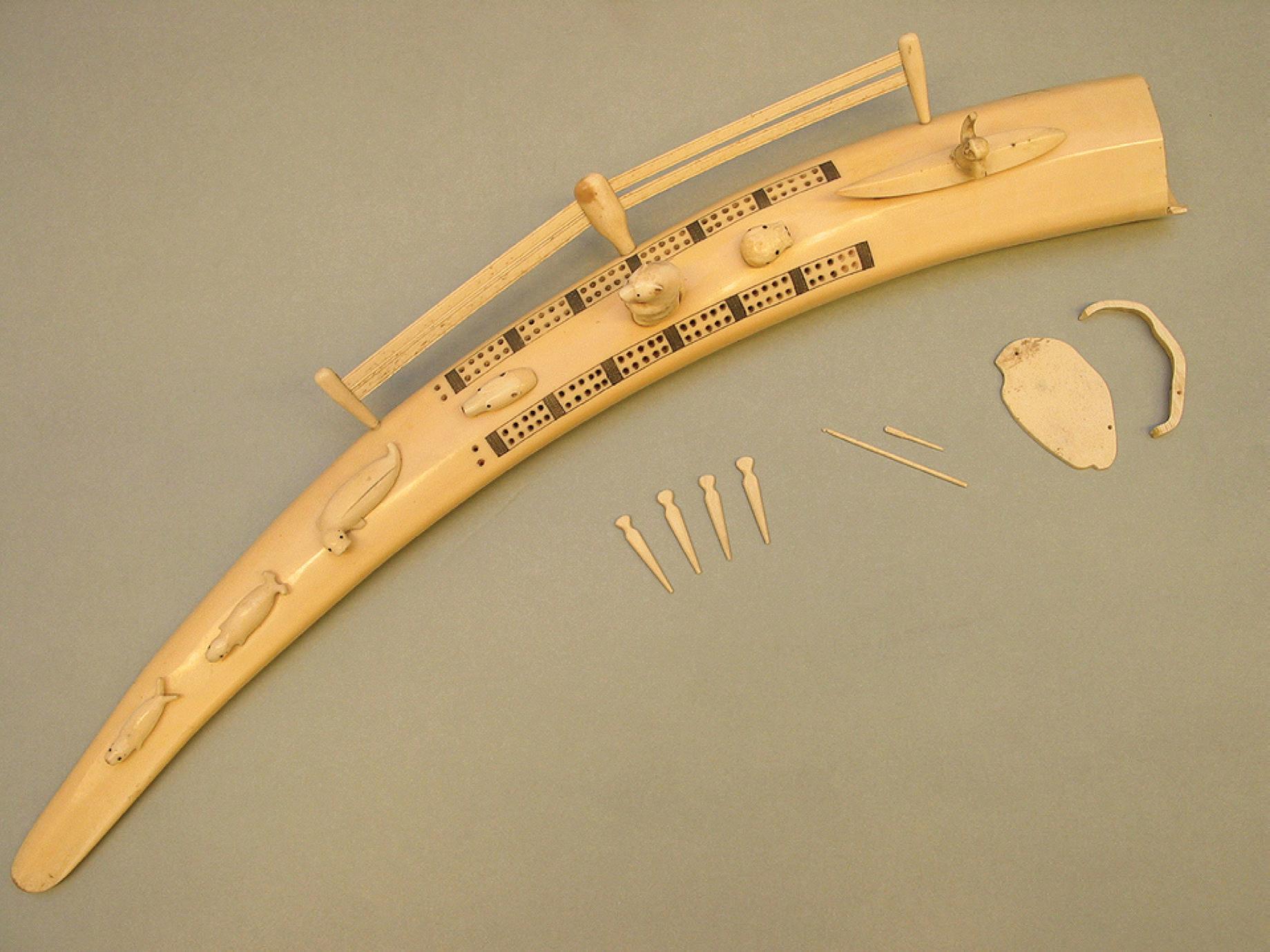 It appears that the Fleetwing was rarely without company from other ships. These other ships’ crew members visited the Fleetwing while the captains (sometimes with their wives) joined the Heppingstones on board for dinner. When visiting, the captains would often bring gifts such as mittens, cigars, butter, nuts, flowers, and books. At one point there were 23 ships in the vicinity of the Fleetwing. On April 29th Adeline writes: “I beat Capt. Cogan and Capt. Barker playing checkers.” She also describes several visits by “Esquimaux,” Inuit or Iñupiat individuals, when the Fleetwing was at anchor. Native Alaskans looked to trade for items that whalers might have, though Adeline records only one trade for boots and ivory from them.