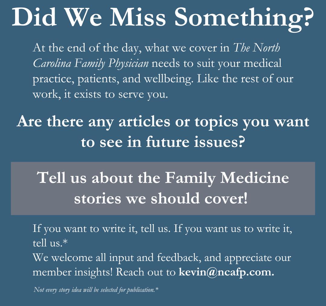 In closing, I also wanted to mention that NCAFP President Dr. Garett Franklin and I recently had the opportunity to talk about the challenges and opportunities of Family Medicine with a columnist at the Triangle Business Journal (a weekly publication focused on the business community in the Raleigh-Durham area). Dr. Franklin emphasized how the state and payers could use key policy levers to improve the primary care work environment and ultimately increase the number of medical students entering Family Medicine. We discussed the need for greater investment in primary care, the need to reduce administrative burdens in practice, and efforts of the NCAFP Foundation to provide early and frequent experiences in Family Medicine to medical students throughout the state, as well as our desire to increase our Medical Student Endowment. The article appeared on June 21.
