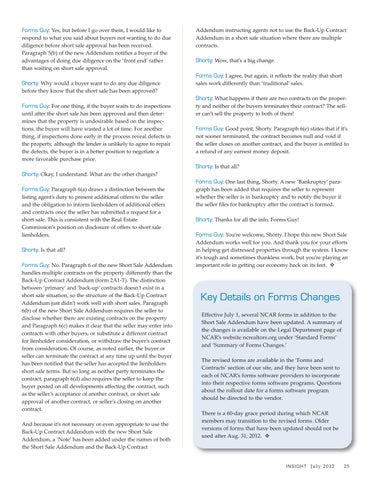 Effective July 1, several NCAR forms in addition to the Short Sale Addendum have been updated. A summary of the changes is available on the Legal Department page of NCAR’s website ncrealtors.org under ‘Standard Forms’ and ‘Summary of Forms Changes.’