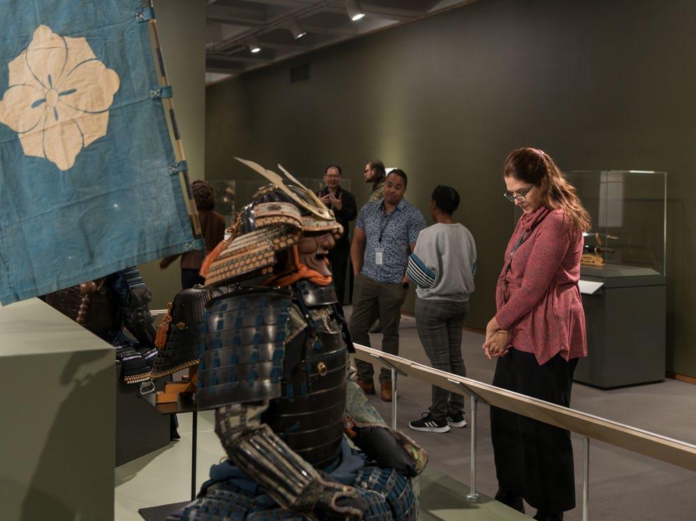 Curating an exhibition on the samurai stems from this early interest and aligns with the Museum’s 2020–25 strategic plan goal to highlight multiple, diverse histories, voices, and perspectives. In the West we are taught very little about Asian history, and what we know often relates to food, pop culture, and international events. Upon hearing the word samurai almost everybody will think “Japanese warrior.” Most of us, however, won’t know much about the historical, political, or cultural context associated with them. Through my discussions with the armor collector who lent his holdings to Samurai: The Making of a Warrior, consulting scholars, and Japanese community partners as well as my research for the exhibition, I realized how true this is.