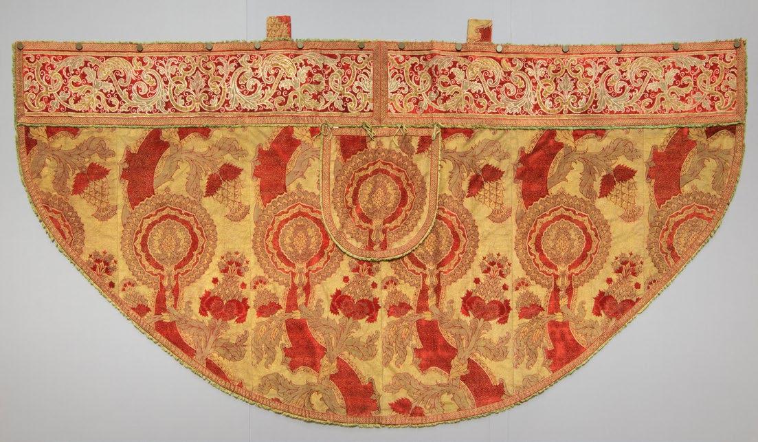 Today the Catalan surname Fortuny is synonymous with luxury textiles and the revival of historical motifs and patterns, especially the shared Venetian-Ottoman decorative vocabulary. Born in Granada, Mariano Fortuny spent most of his career as an artist and designer in Venice. His interest in historical textiles led him to develop methods for printing lightweight, modern fabrics that mimicked the uneven textures and light-reflective properties of Venetian Renaissance brocades. Around 1930 he designed a spectacular cope (ecclesiastical cape) whose floral patterns derive from Venetian and Ottoman silks in his own collection.