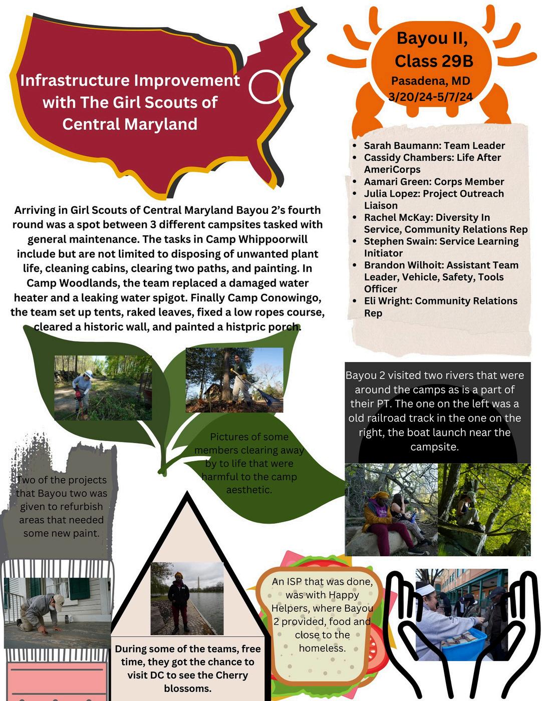 The team spent 4 weeks with GSWCF. However- each week was spent working at a different camp! They did a variety of tasks surrounding the upkeep of the camps, such as: barn demolition, trail maintenance, deck repair, and cabin painting