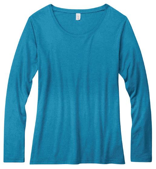 A. 399 WOMEN'S FEATHERWEIGHT LONG SLEEVE SCOOP T-SHIRT Colors: Coral, Caribbean Blue, Raspberry