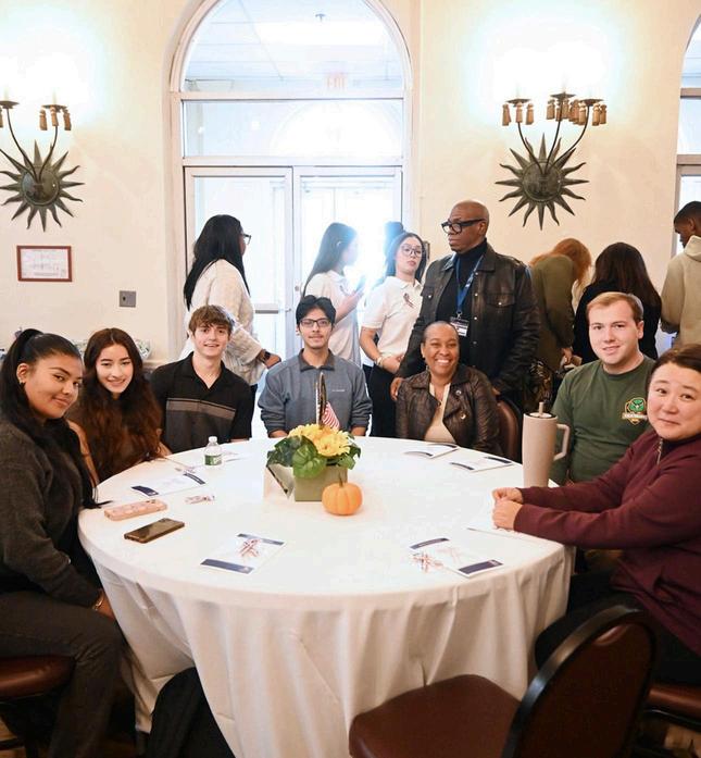 The luncheon also included a recognition of the veterans in attendance, providing an opportunity for the college community to express gratitude directly to those who have worn the uniform. As all veterans were collectively acknowledged for their service, the audience responded with warm applause, creating an atmosphere of respect and unity. As attendees enjoyed lunch together, conversations filled the ballroom, with stories of service, friendship, and resilience being shared across generations. Faculty members and student leaders alike remarked on how the event strengthened the sense of connection across campus, bridging the experiences of veterans and civilians in a shared spirit of gratitude.