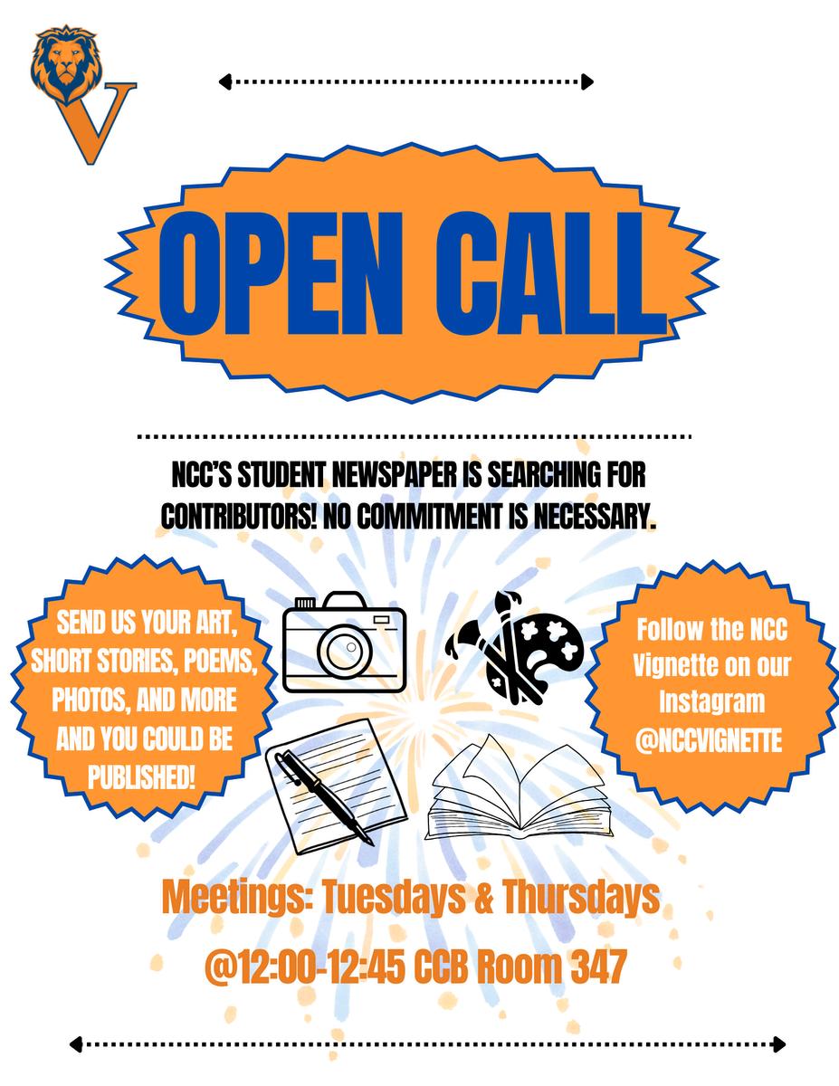 As we reach the end of the semester, I want to thank everyone in our campus community for supporting The Vignette and for continuing to share in the stories that shape life at NCC. Each issue is a team effort, and I am grateful for the writers, photographers, editors, and contributors who helped bring this edition to life.