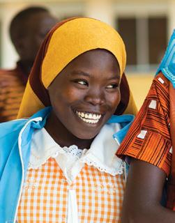 EIGHTEEN-YEAR-OLD FARIDA AGUTI (left), and her 22-year-old sister, Rukia Aumo, smile broadly outside the PEN-Plus clinic in Atutur, Uganda, where they receive care for sickle cell disease.