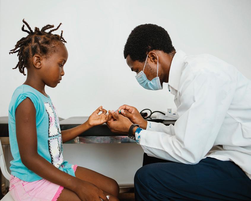 AT THE PEN-PLUS CLINIC In Lisungwi, Malawi, nurse Victor Kaphaso provides seven-year-old Kevini Jamu with medication and specialized care for sickle cell disease.