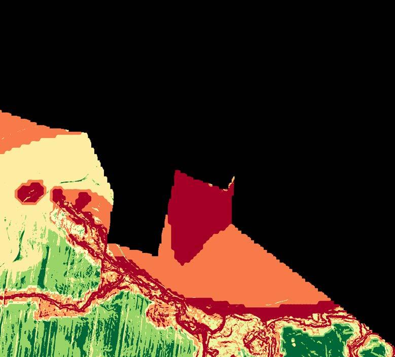 All layers are overlaid and areas with the highest overlap of values get the highest conservation priority. Conservation priority areas are then removed from potential areas suitable for high use, before slope is considered.