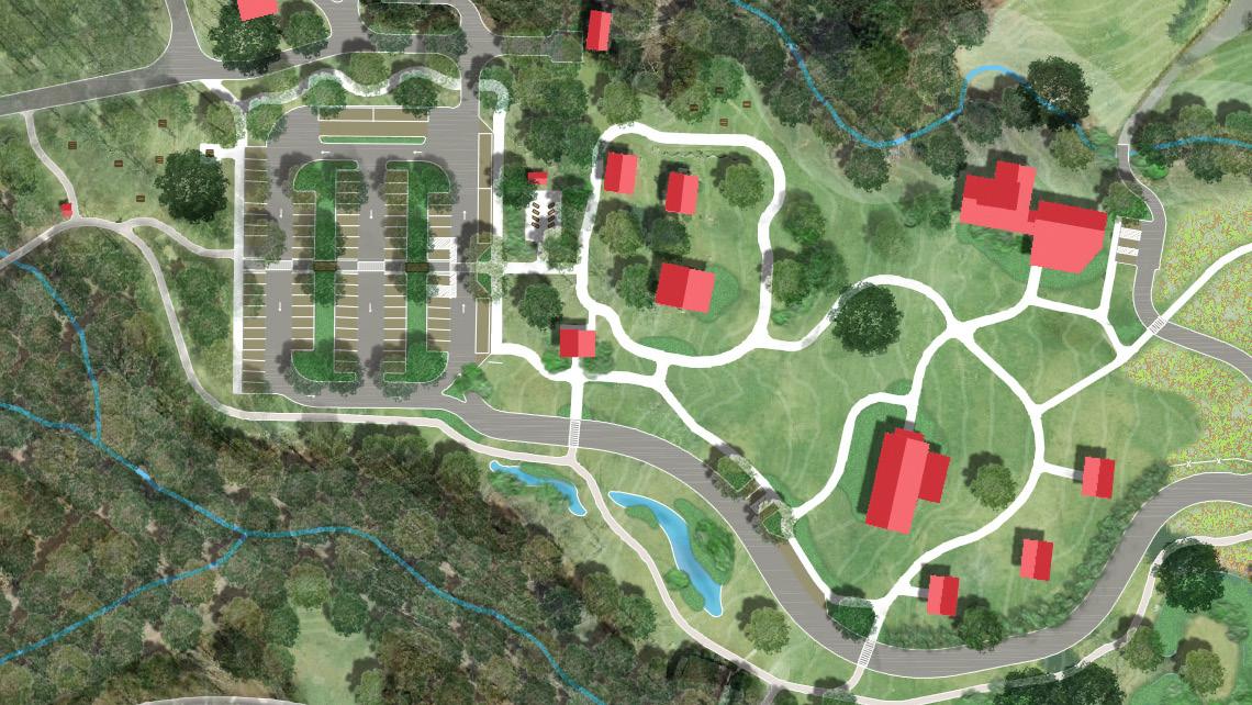 In 2023, a team of ecologists, landscape designers, and planners visited the property multiple times to gather targeted data and information on the existing conditions of the property. Multiple facets of the landscape were explored, including a site inventory, points of interest, problem areas, and opportunities for development of the park. The site analysis provided the existing condition of the property as it relates to slopes, soils, and physical features that impact the development potential of the property for park infrastructure.