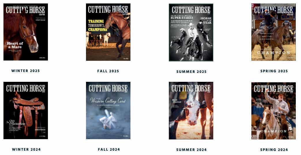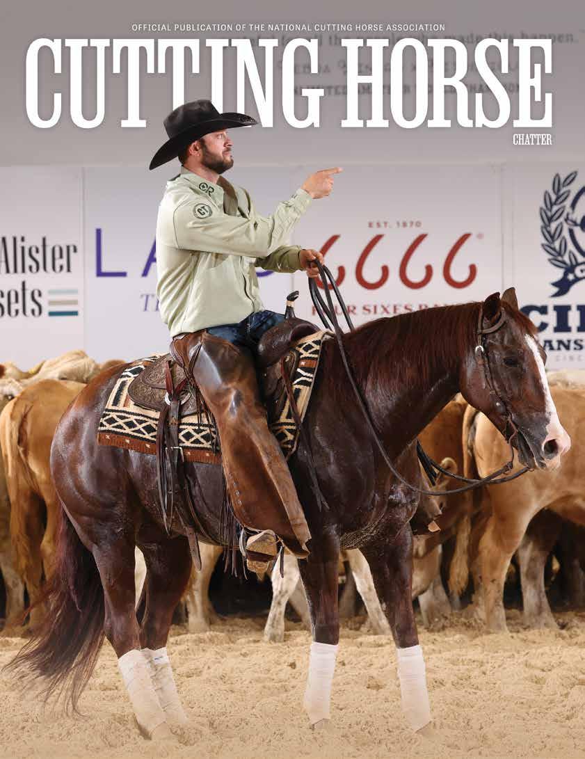 (817) 244-6188. Periodicals postage paid at Fort Worth, Texas, and additional mailing offices. The subscription rate of $6.00 is included in the National Cutting Horse Association’s annual membership dues. POSTMASTER: Send address changes to the Cutting Horse Chatter, 260 Bailey Ave. Fort Worth, Texas 76107