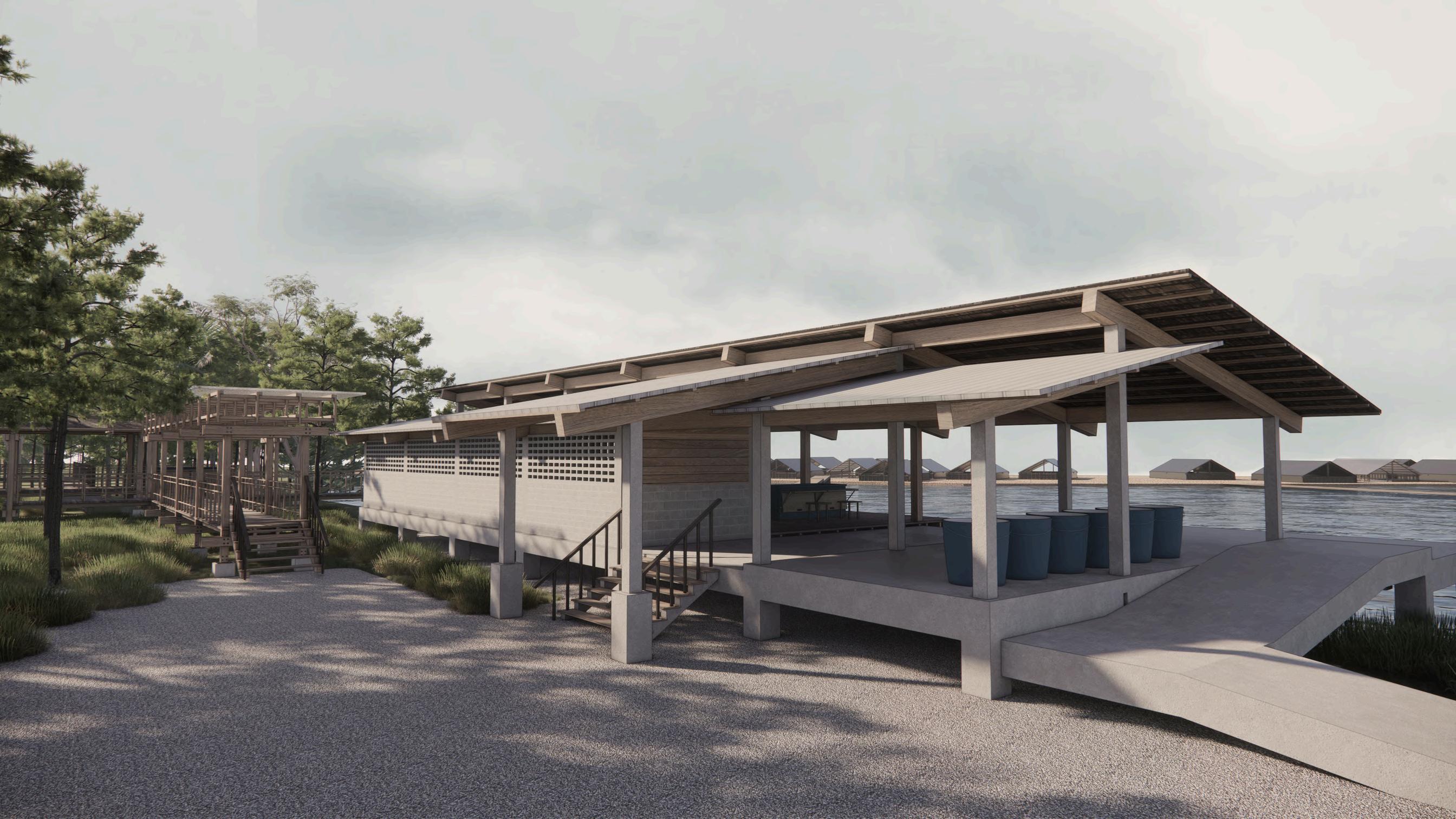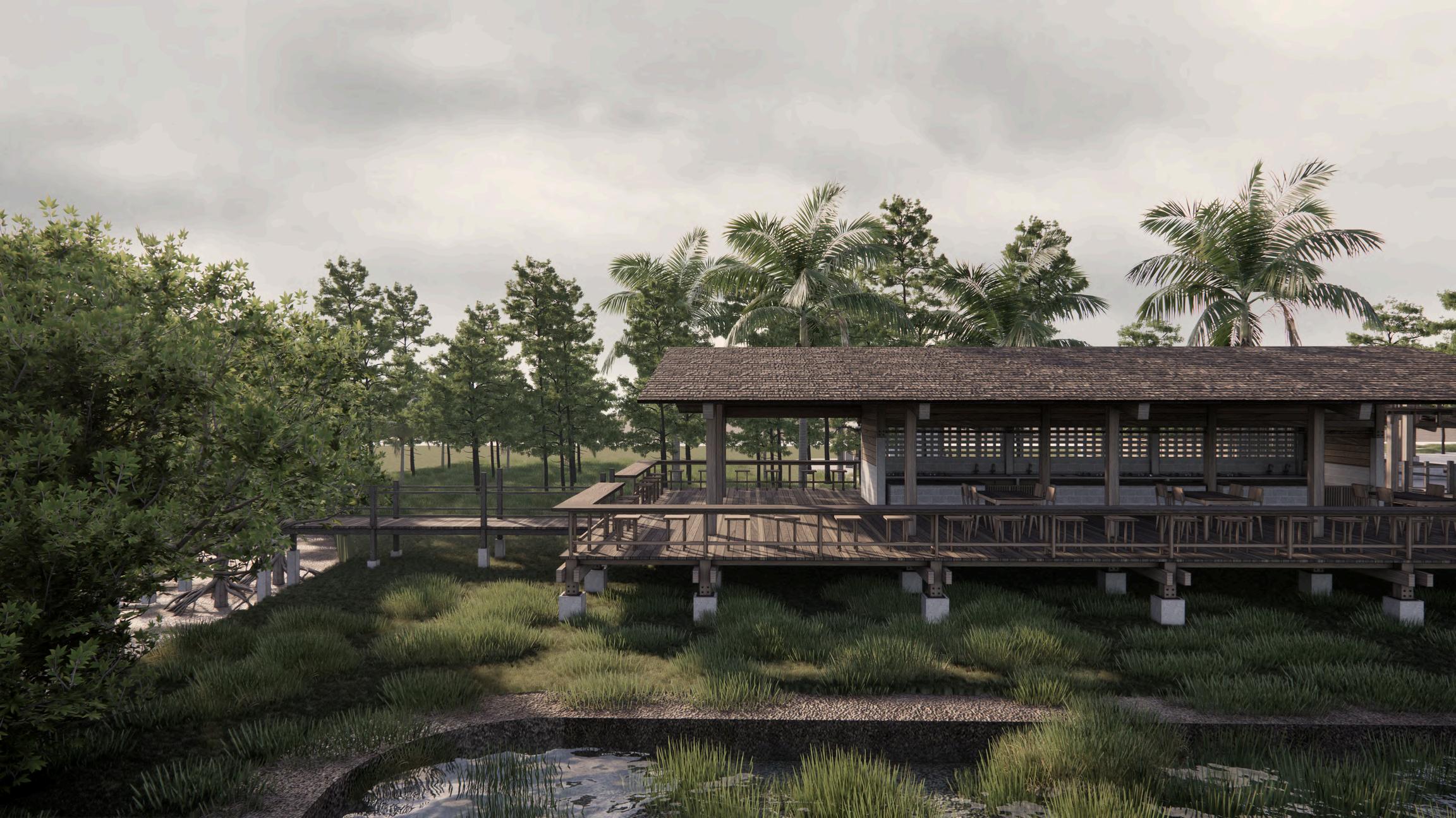 1 2. 3. 4 5 6 7 LABEL ลานจอดรถ 1. พนทตอนรบนกทองเทยวและพนทพบปะของชมชน 2 พนทแปรรปอาหารทะเล 3 พนทขายสนคาแปรรปและอาหารทะเล 4. รานอาหารชมชนและจดเชอมตอเสนทางศกษา ธรรมชาตปาชายเลน 5 พนทบําบดนา6. เสนทางศกษาธรรมชาตปาชายเลนและปาบก 7 SITE 1