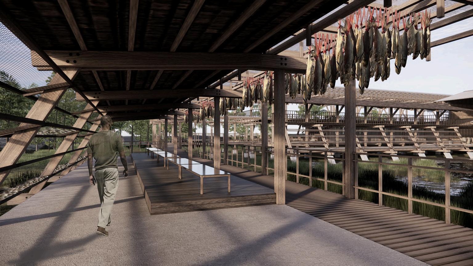 พนทตากปลาเคมแบบผง พนทชมการตากปลาเคม และพนท workshop การดองเกลอ พนทตากปลาเคมแบบแขวน พนทดองเกลอ พนทชมการดองเกลอ พนทชมการตากปลาเคม