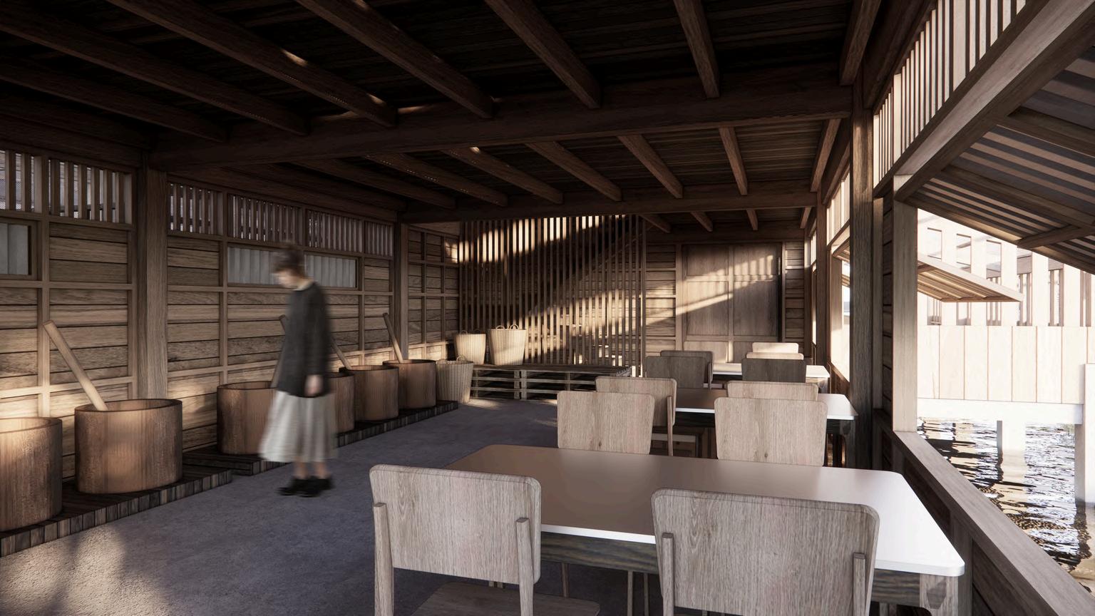 2 1 1 2 GROUND FLOOR PLAN พนทแปรรป : กะป LABEL ทางเขาหลก 1 พนทชมการทํากะป : หมกเกลอ 2. พนทชมการทํากะป : ตากเคย 3. พนทหมกเกลอ 4 พนทรดนาเคย 5. พนทตําเคย 6 พนทหมกเคย 7 พนทบรรจภณฑ 8. MAIN ENTRANCE พนทชมขนตอนการหมกเกลอ 3 4 5 6 7 8