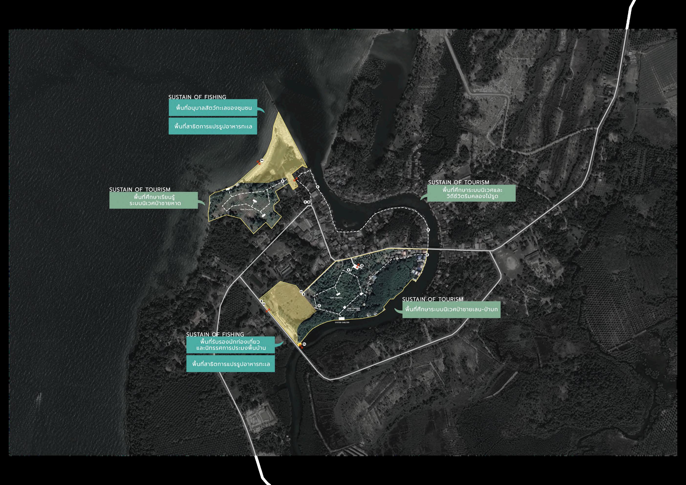 0.1 0 2 0 3 0.4 0 KILOMETERS HIGHSEASON(MAY-OCT) พนทเรยนรระบบนเวศปาชายหาด พนทพกแมงกระพรน พนทอนบาลสตวนา พนทศกษาระบบนเวศรมคลองไมรด พนทศกษาระบบนเวศปาชายเลน พนทแปรรปอาหารทะเล พนทพบปะสวนกลางของชมชน Z Z O N E 1 Z Z O N E 2 PROGRAMING 1 2 พนทพกแมงกระพรน พนทพบปะสวนกลางของชมชน
