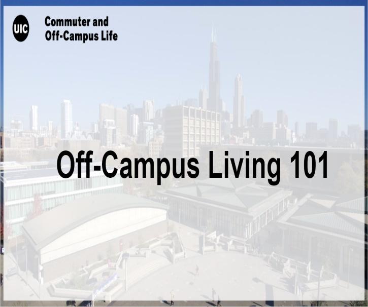 Ra>onale: Many UIC students look for offcampus housing because it meets their needs. However, the first step into looking for housing can be confusing. COCL’s Off-Campus Living 101 presenta8on is to provide students with informa8on on searching for housing off campus.