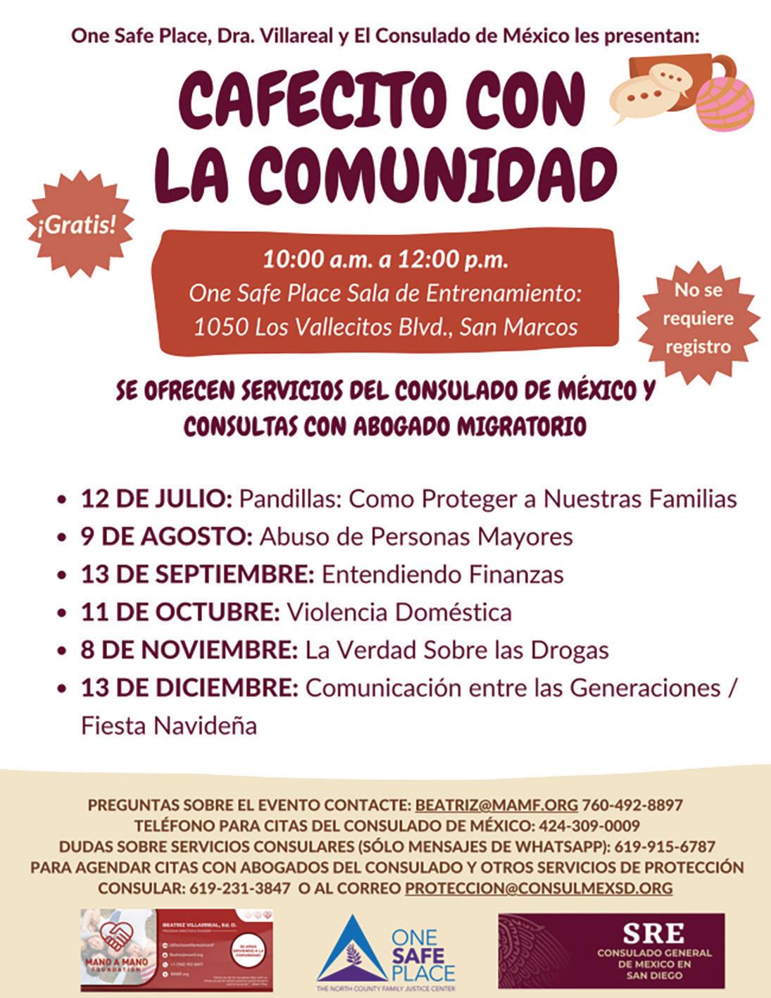 - Abogados del Consulado y otros servicios de protección consular: proteccion@consulmexsd.org