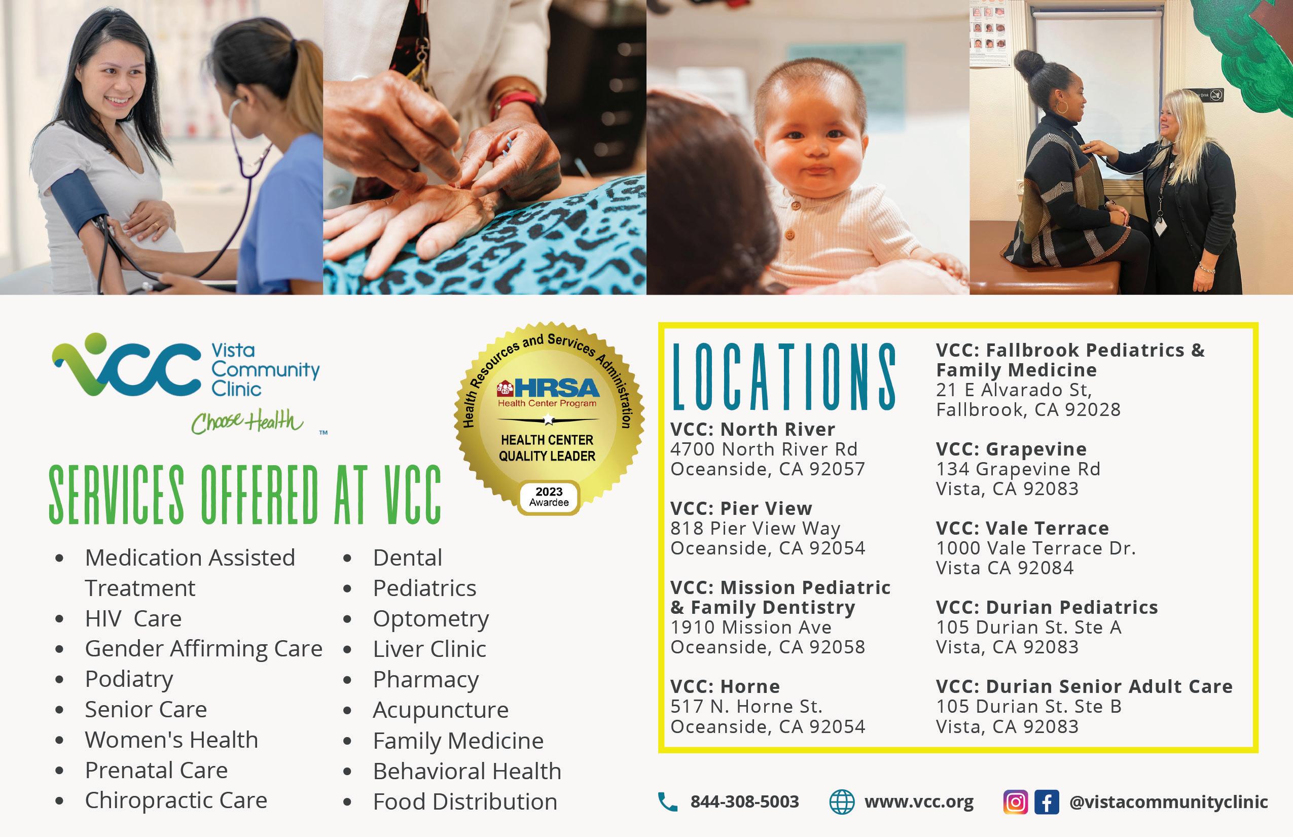 - 3 meals daily, showers, laundry, case management, peer support, healthcare through Vista Community Clinic