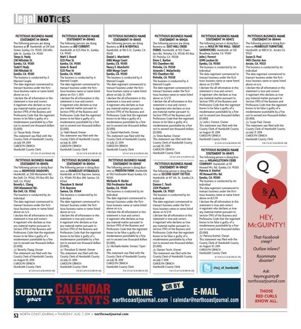 52 NORTH COAST JOURNAL • THURSDAY, AUG. 7, 2014 • northcoastjournal.com