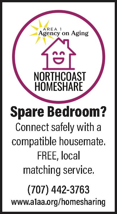 default default Margins are just a safe area Ready to Deepen? Get to the Root! NOW Accepting New Clients Somatic Psychotherapy Expressive Arts Therapy Sex Therapy Intensives Events PRIVATE PAY You are invited: OPEN HOUSE March 10 • 5-7pm 350 E Street Ste 302 Old Town, Eureka Kris Coffman LMFT 131324 MARKETPLACE Make a Difference IN YOUR COMMUNITY California MENTOR is seeking individuals and families with an available room in their home to help support an adult with developmental disabilities. Work from the comfort of your own home while making a difference in our community and changing someone’s life for the better. Receive ongoing support and a dependable monthly payment. CONTACT RITA AT 7074424500 www. mentorswanted.com Other Professionals PROFESSIONAL ORGANIZERSINCE2006 Projectsputoffuntil Someday? Seehowfunandeasyitis todoittogether. Home,Office,Paper FreeAssessment SeniorDiscount Confidential HaulAwayService (707)672−6620 SomedayServices@yahoo.co m ROCKCHIP? Windshieldrepairisour specialty.Foremergency serviceCALLGLASWELDER 442−GLAS(4527)humboldt windshieldrepair.com YOUR AD HERE classified@north coastjournal.com YOUR AD HERE classified@north coastjournal.com default Toll free 1-877-964-2001 Registered nurse support Personal Care Light Housekeeping Assistance with daily activities Respite care & much more We are here for you Insured & Bonded Serving Northern California for over 20 years! IN HOME SERVICES