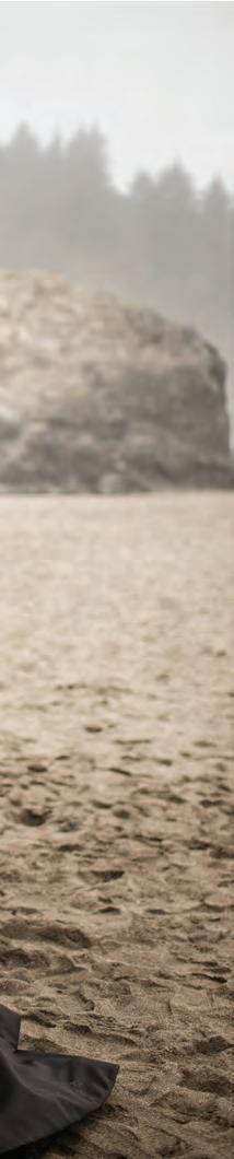 People don’t get lost in the majestic scenery of Leatherwood’s photos, which is saying something, given the rugged vistas of our coast and the breathtaking scale of our trees. It’s the people that draw the eye in her images. “I see a story now,” she says, “they just happen to be in this magnificent location.” And since it’s about people for her, less epic backgrounds still make for compelling shots. Along with cli tops and remote trails, she’s shot at the courthouse, too. In fact, it’s where her son tied the knot.