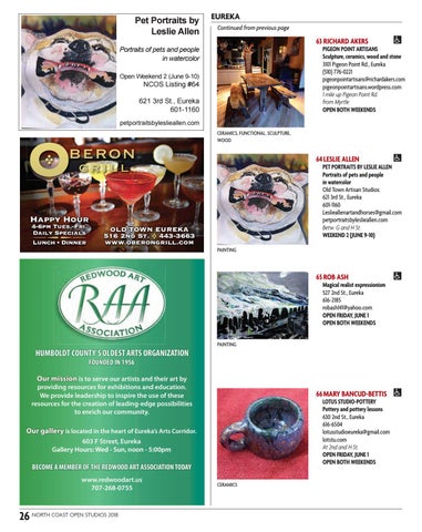621 3rd St., Eureka 601-1160 petportraitsbyleslieallen.com CERAMICS, FUNCTIONAL, SCULPTURE, WOOD