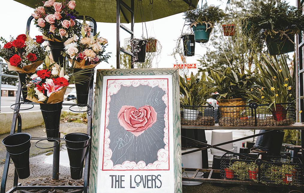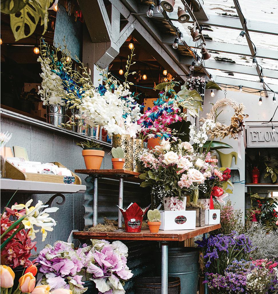 AT THE SOUTH ENTRANCE TO EUREKA IS A CHARMING LOCAL FIXTURE. No, not the gi ant hammer looming over U.S. Highway 101. Look lower and just to the north. A small, unassuming building when closed transforms into an oasis of plants, cut flowers, vase arrangements and ready-to-go bouquets during business hours. Pocket of Posies, a full-service florist, has been Pierson Building Center’s big hammer’s little neighbor for decades. It has changed hands a few times since it began and April Reynolds is the owner these days. She’s always been artistic and crafty. When the opportunity presented itself through