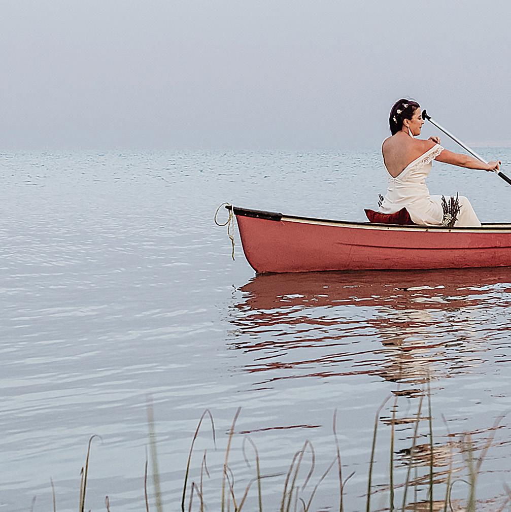Whether your vibe is rustic or posh, get creative by searching our many local thrift shops or putting the word out to locally focused social media buy/sell/trade groups to find items that can be repurposed for your big day. Glean ideas o the internet beforehand or, if you doubt your own creative skill, hit up your artsy friends. If you must buy new, choose items that can be reused. Remember: Plastic is nobody’s friend. Whatever you do, skip the balloons. They’re literally li er on a string.