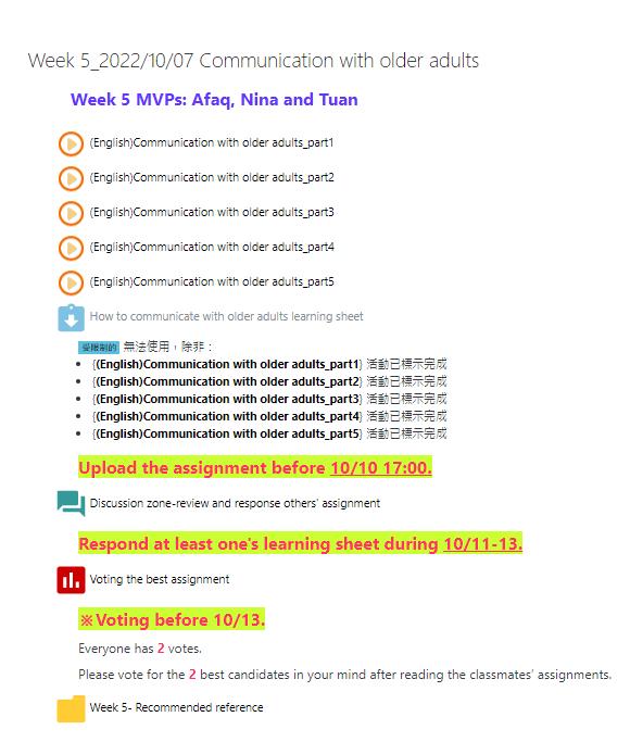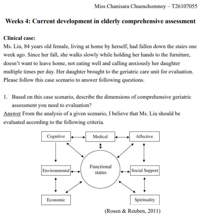 • Group oral presentation on a specific geriatric care issue.