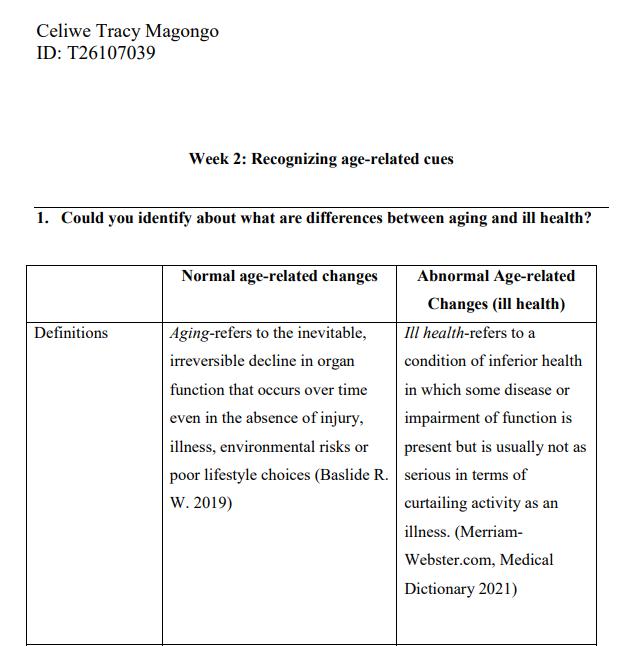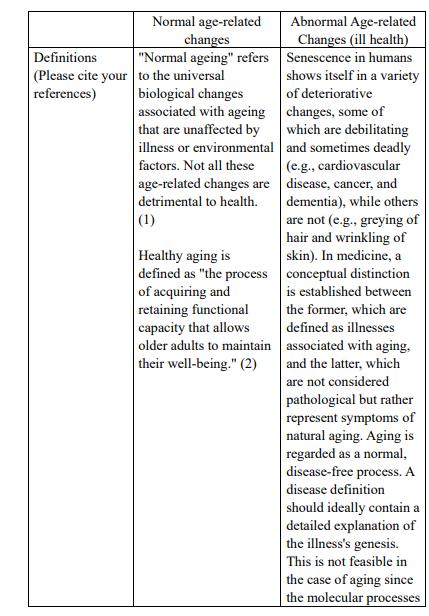 Distinguish the differences between age-related changing and ill-health.