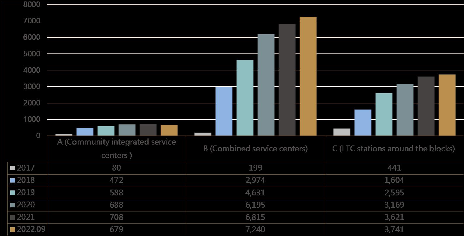 A (community integrated service centers): increases 8.5 times.
