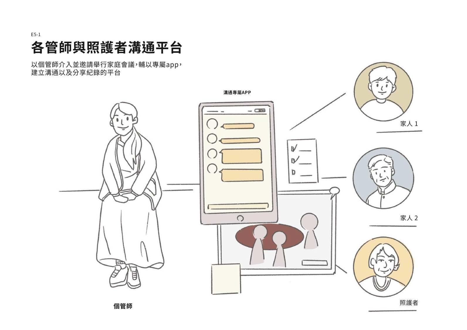 工作坊的方法論產出 使用者場 域訪談與 人物誌建 立 人物誌資訊 補充 人員互訪與 人物誌情境 豐富化 AEIOU 照護 情境資訊 download 利害關係 人地圖與 照護生態 系建立 HMW 問題 敘述句撰 寫 HMW 矩陣 問題選取 Brainwriting 方案發想 接力 選取準則 建立與方 案選取 服務設計 Storyboar d 情境繪 製 使用者與利 害關係人測 試回饋 資源盤點與 行動方案規 劃 情境主題與 搭配照護者 聚焦