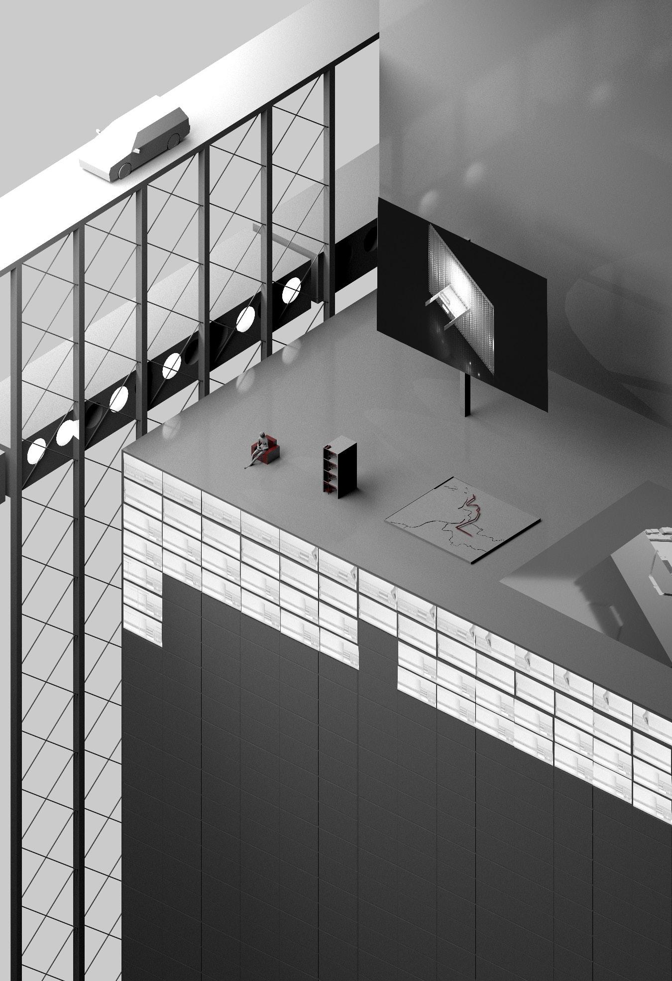 透過解構幾種program,將機能的本質抽出,重新分 配並組織,在這個建築裡,希望呈現公共與私人、集 體與個體的交錯關係,讓人意識到身分轉換,也將每 一個人身分轉換的過程用更有層次的方式連接。