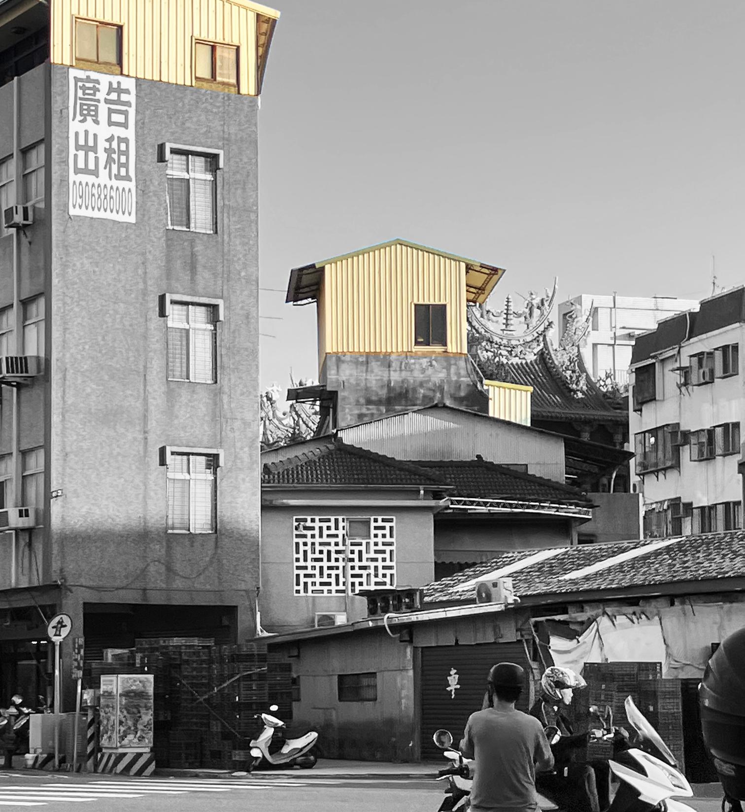 在台灣,加蓋時常作為需求空間的補充、 舊建物維護的方案,簡易的輕結構讓附
