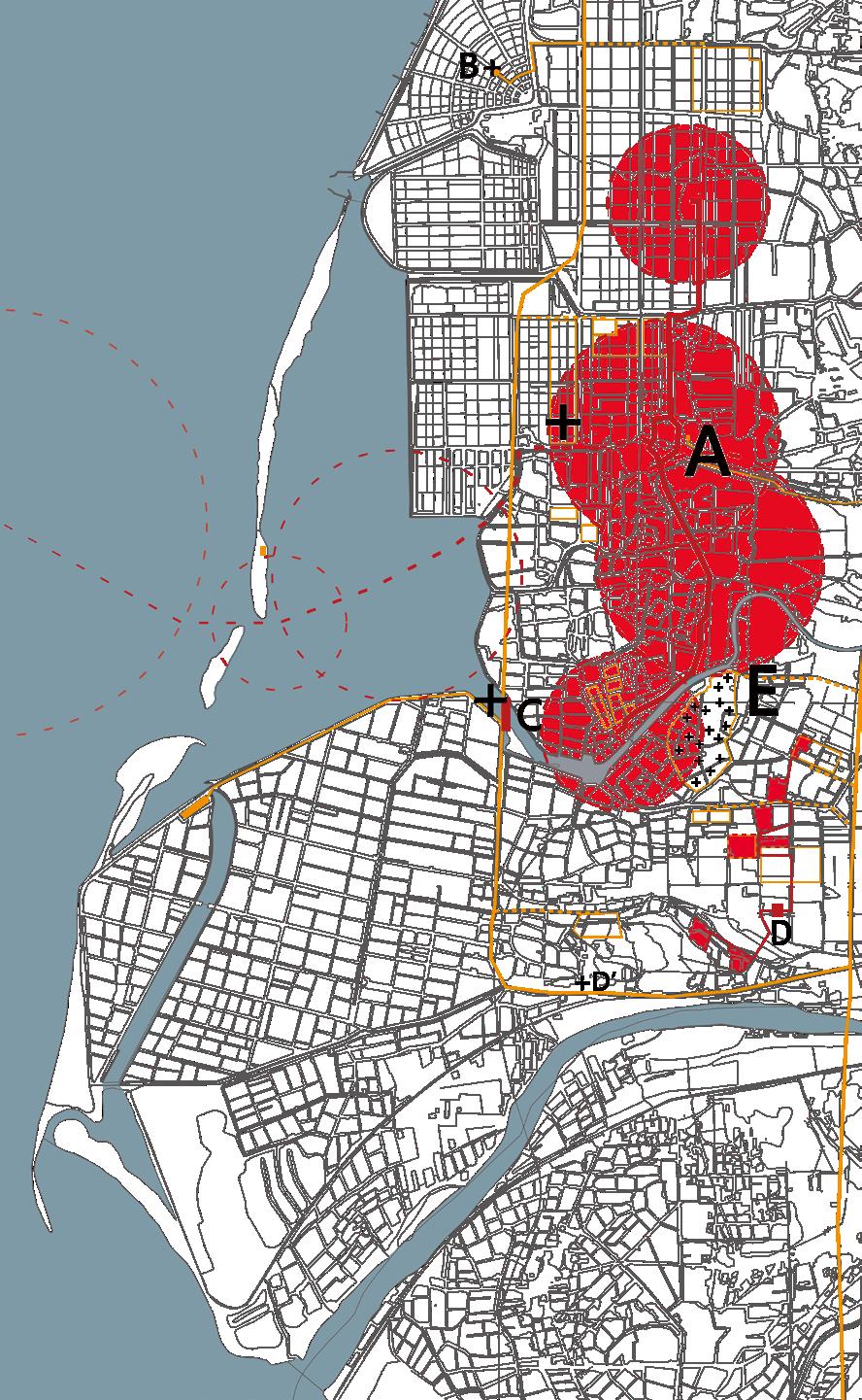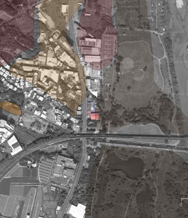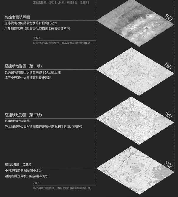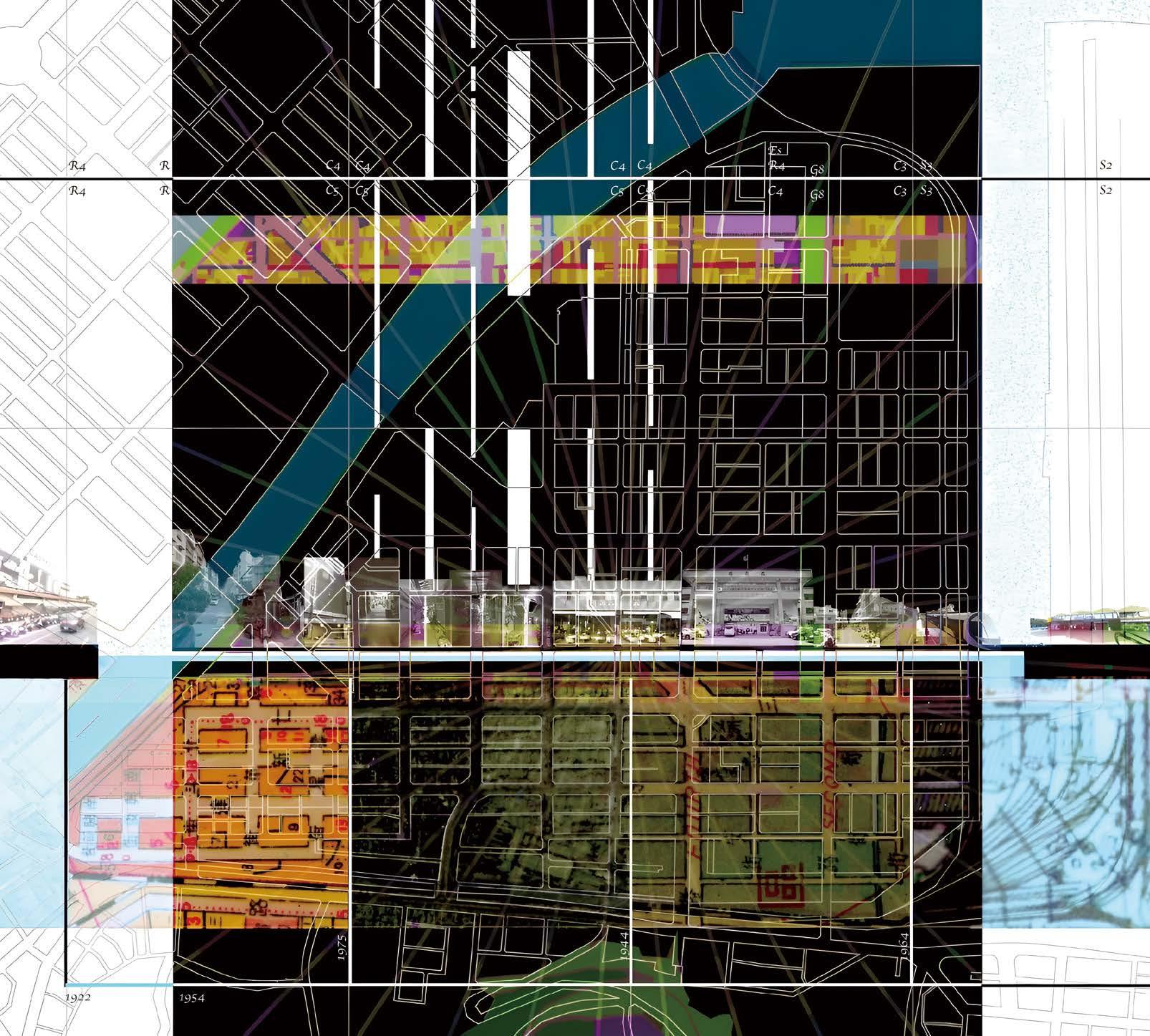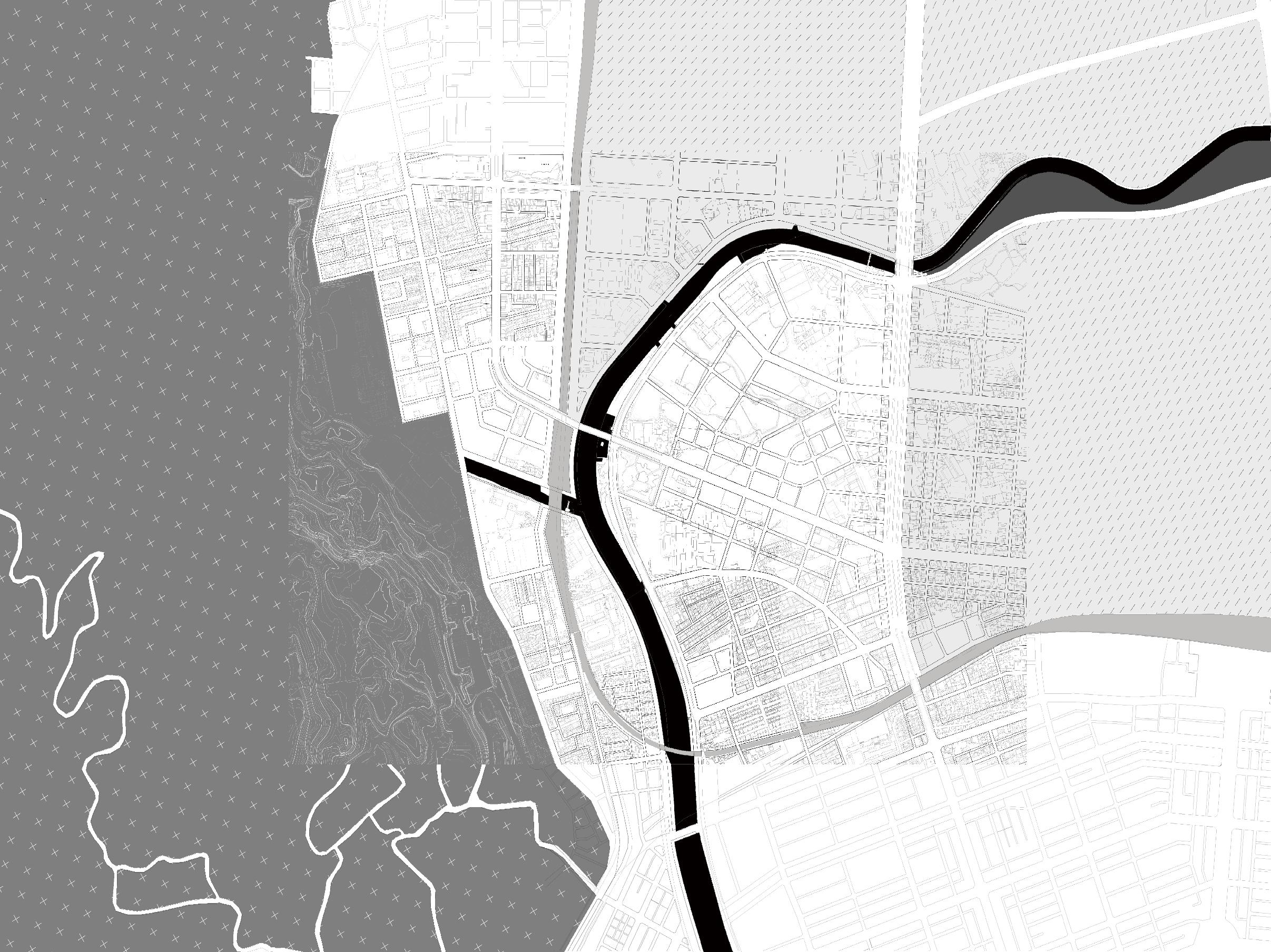 然而調解的核心,成為了護城河、曹公圳 道、菱角田、滯洪池等,對都市紋理的形 塑皆在水的周遭留下深淺不一的侵蝕,