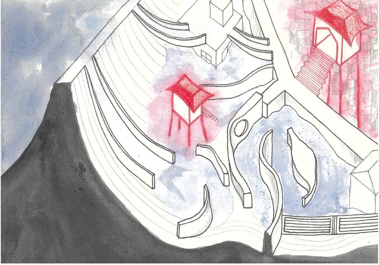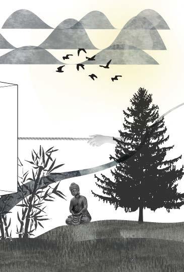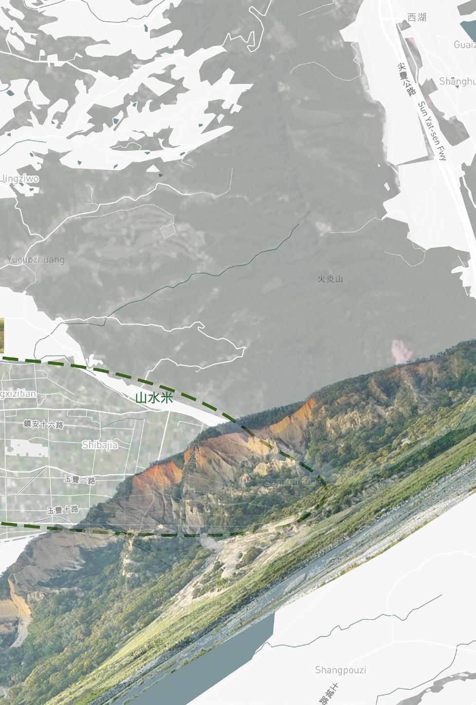 而現狀因為過度目的性的開發,宗教信 仰、水泥礦業和軍事分別在山體上佔據 不同的部位,讓當代人在感知山體的整 體性出現嚴重斷裂,由此用「分身」之邏 輯作為擾動感知的機會。