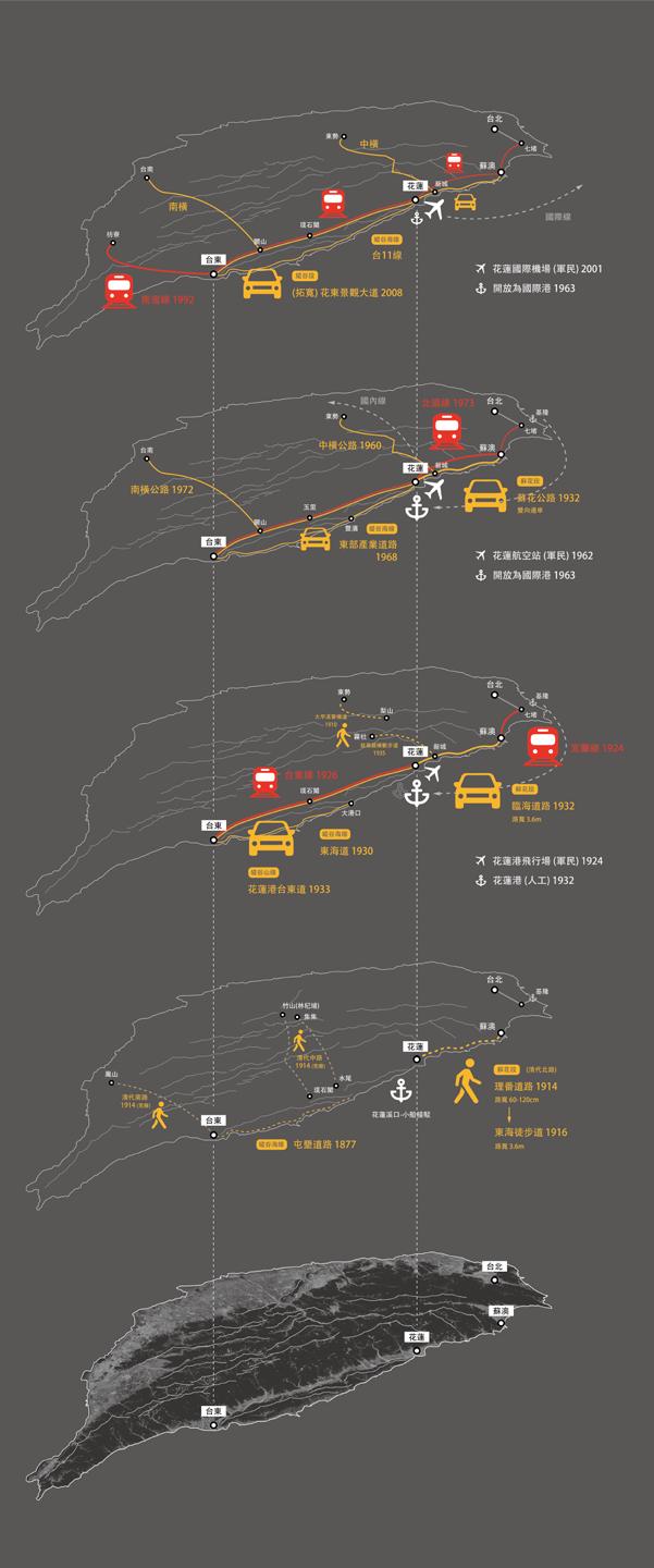 從基礎設施的歷史疊圖可以發現,金廈 在政治、經濟上的牽制,以空間的形式呈 現在地圖上一目了然。