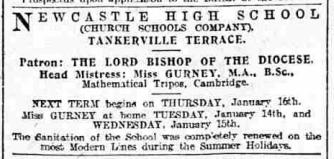 A natural rivalry between the CSC’s Newcastle High School for Girls and the GPDSC’s Central Newcastle High School existed from the outset, the establishment of the CSC’s schools in the North East had certainly damaged pupil numbers at Gateshead so this offer of purchase must have been met with some bad feeling. The CSC “disavowed any intention of selling” and expressed a desire to avoid future rivalry.