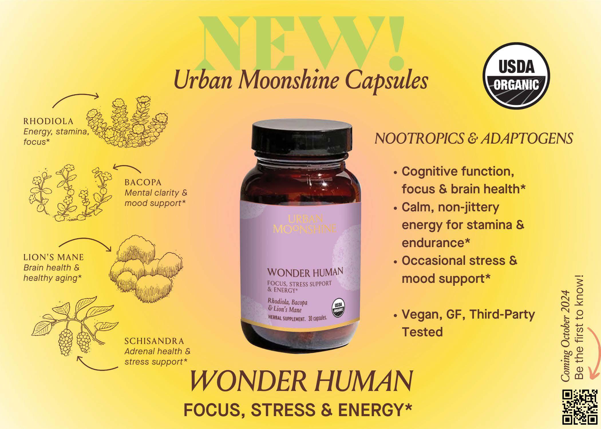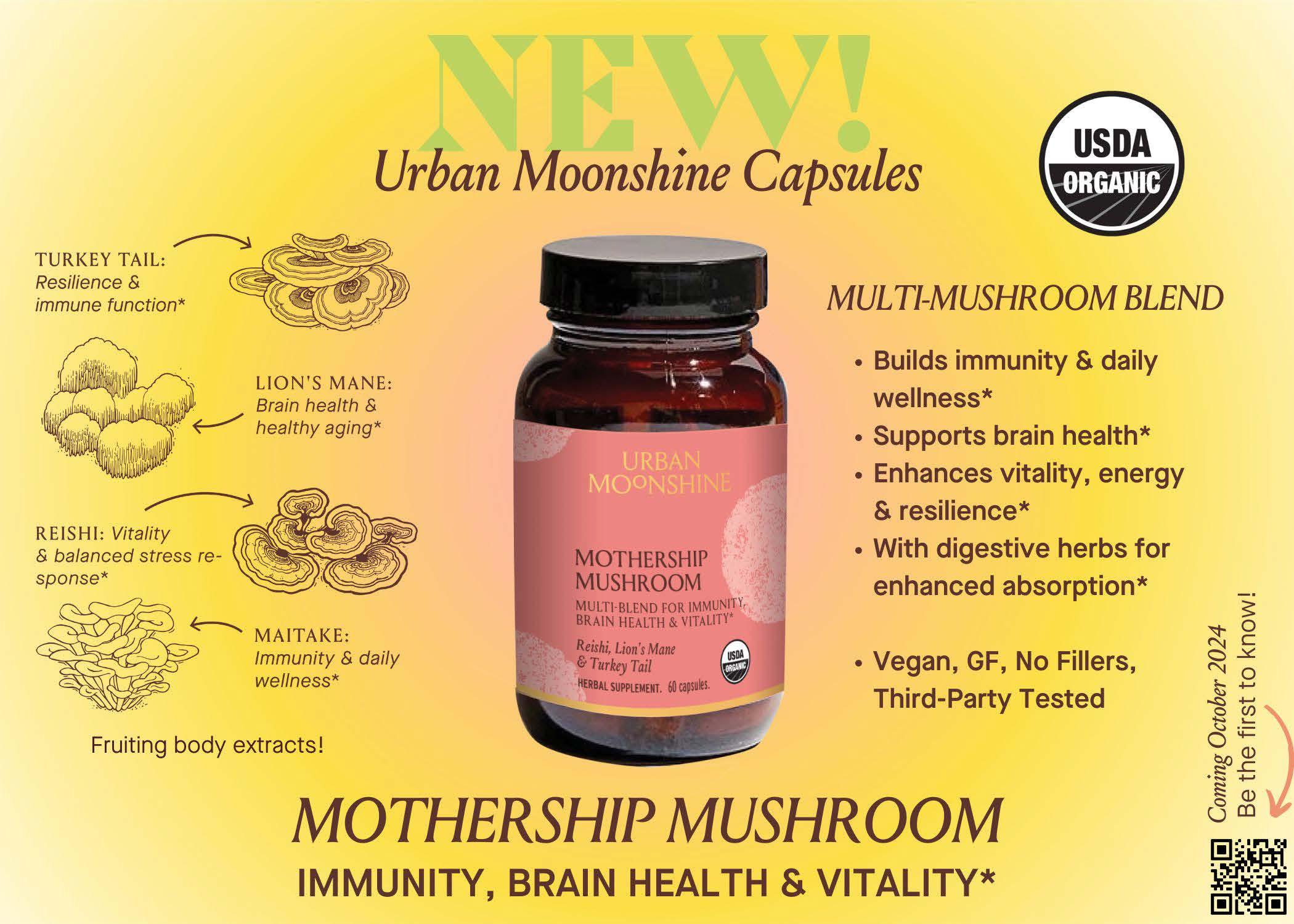Complete your Urban Moonshine set with new to retailer 8oz sizes of Simmer Down, Joy Tonic, Clear Chest and Mushroom Immune. For more information please email sales@urbanmoonshine.com!