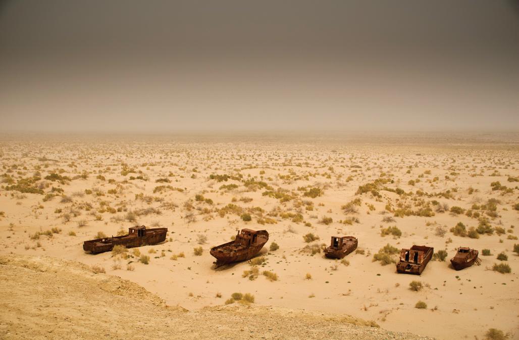 B: Photograph of abandoned fishing ships in Aral Sea, NASA Scientific Visualization Studio, https://svs.gsfc.nasa. gov/10862