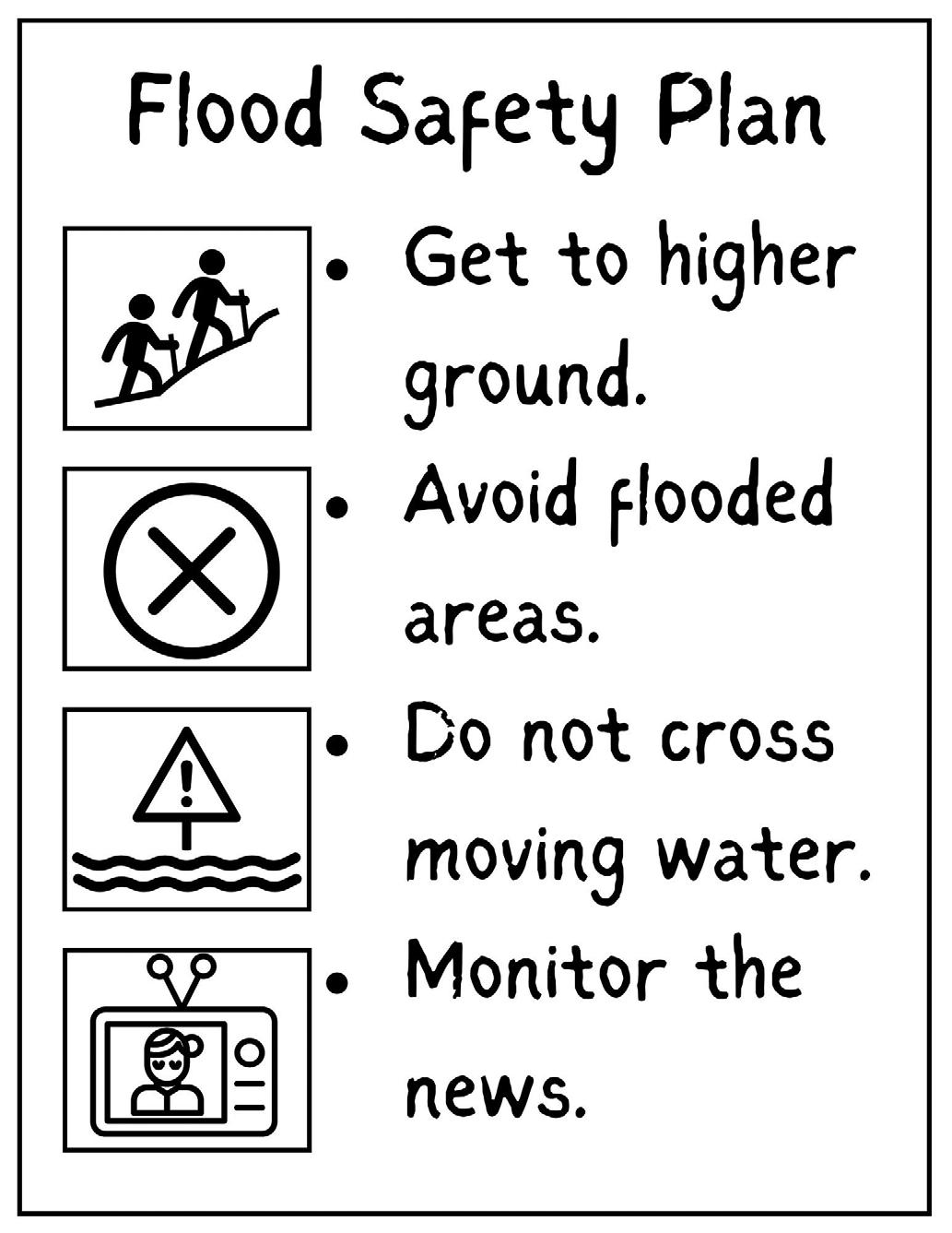 Figure 5. A flood safety plan flyer example to co-construct with students. Created by Koti Hubbard using tips from Southeast Metro Stormwater Authority (www.semswa.org/flood-awareness-for-kids).