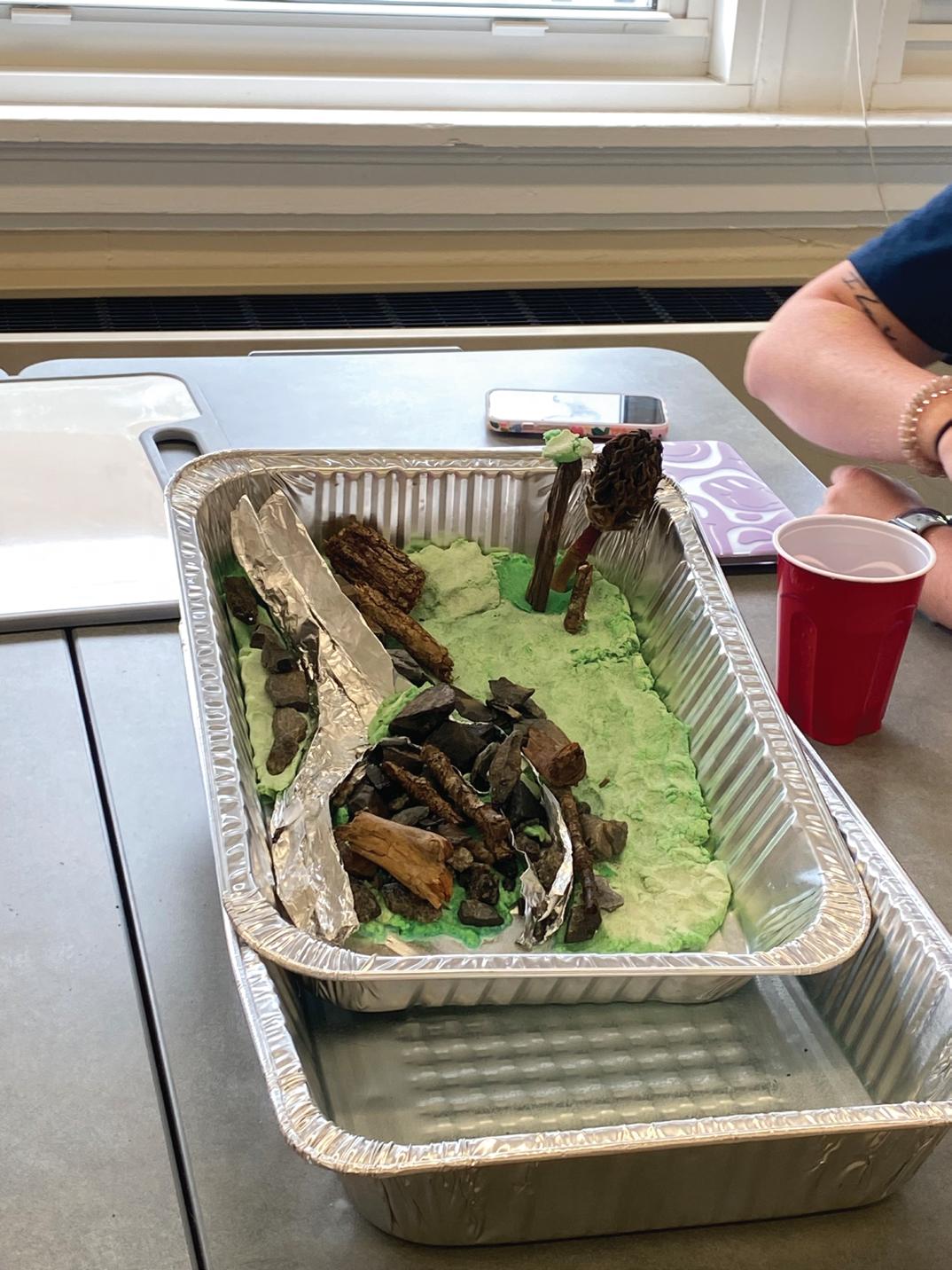 and refine their dams outdoors using the river model from the previous activity (see Figure 3). They select materials like sticks, leaves, rocks, and dirt from around the school and utilize classroom items, such as playdough, craft sticks, and blocks. As they experiment, students adjust their dam designs based on the effectiveness of materials in obstructing or controlling water flow. After successfully stopping the flow of water in their rivers, students are encouraged to think about how dams impact people, places, and animals. While dams play a positive role in managing our environment, they also have a negative effect on marine habitats. Students, with teacher guidance, can discuss the decline in